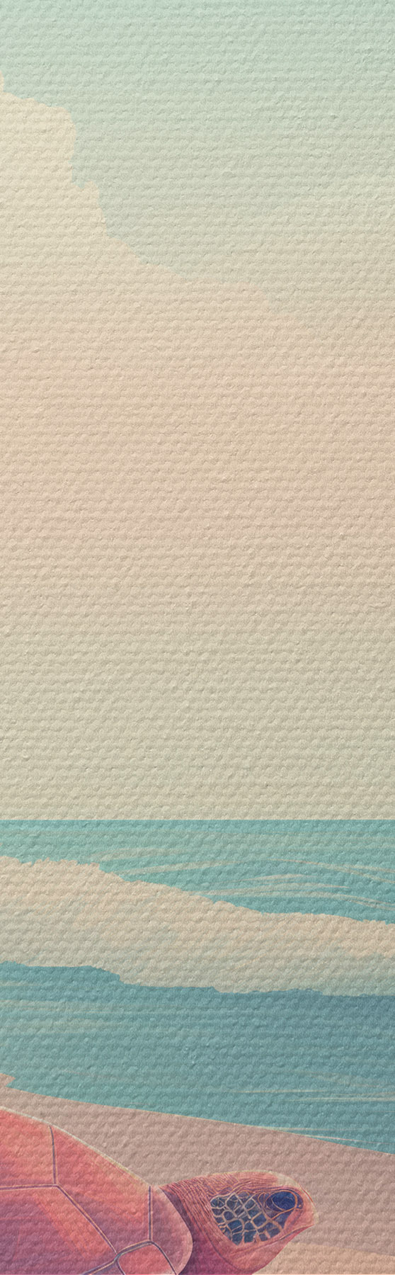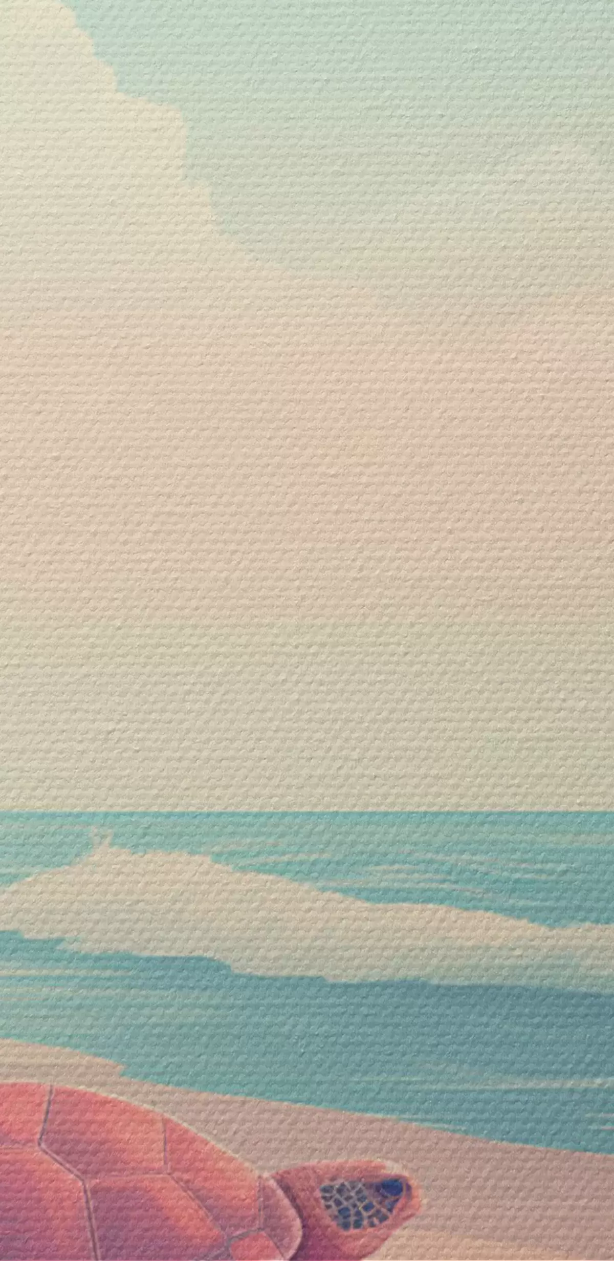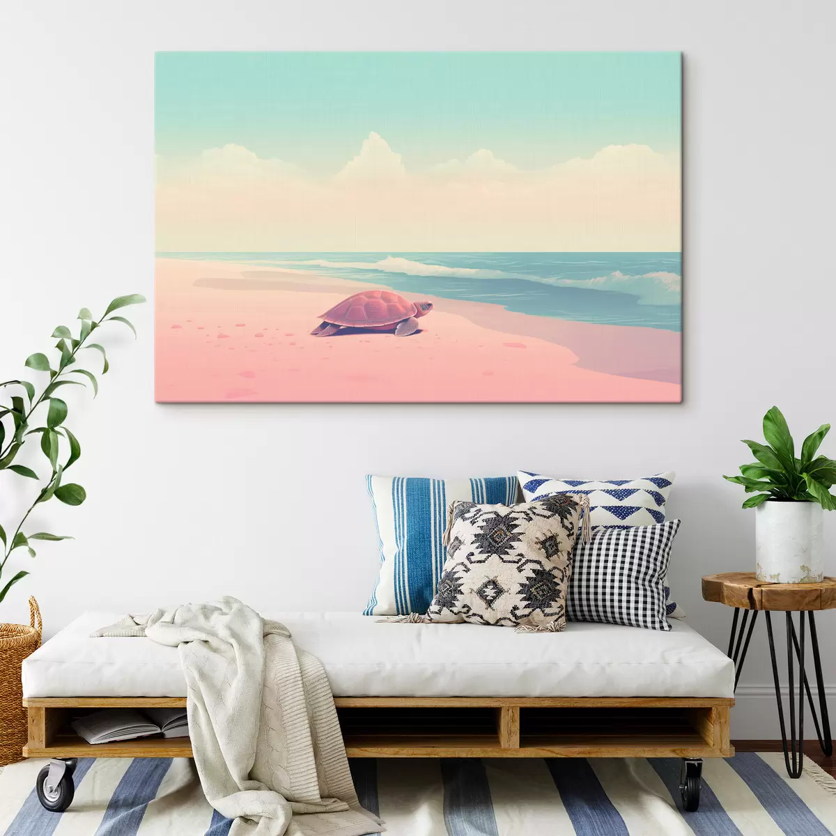 Gemälde Meeresschildkröte an einem rosa Strand: minimalistische Landschaft Art. s45059