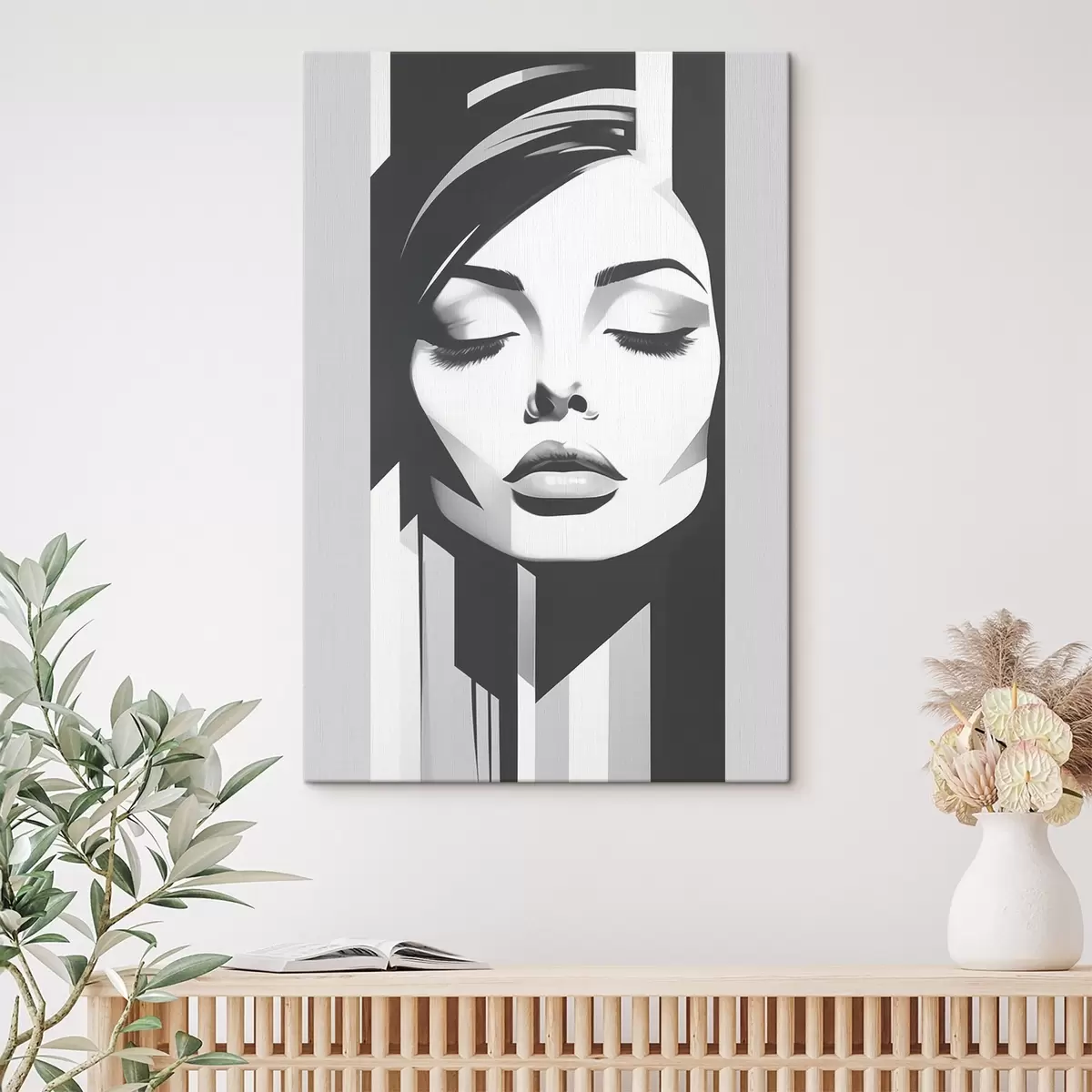 Gemälde Schwarzes und weißes Gesicht mit geschlossenen Augen Art. s45075