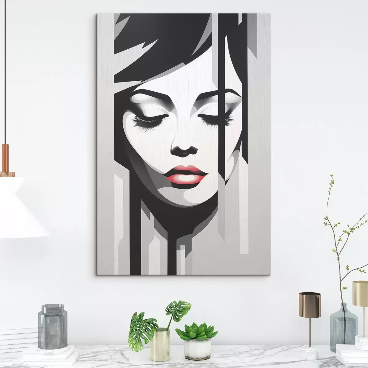 Gemälde Schwarzes und weißes Gesicht mit geschlossenen Augen Art. s45076
