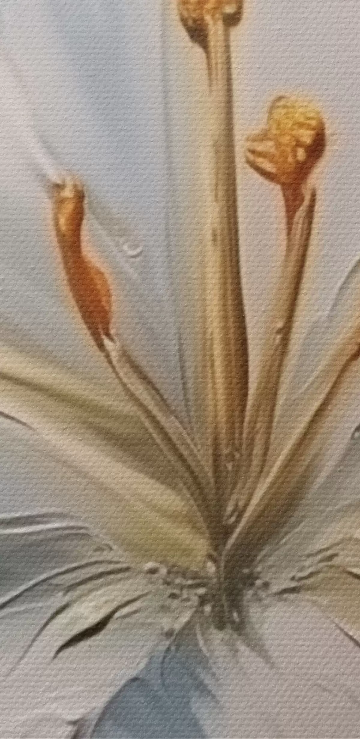 Gemälde Weiße Lilie mit gelben Akzenten auf blauem Hintergrund Art. s45078