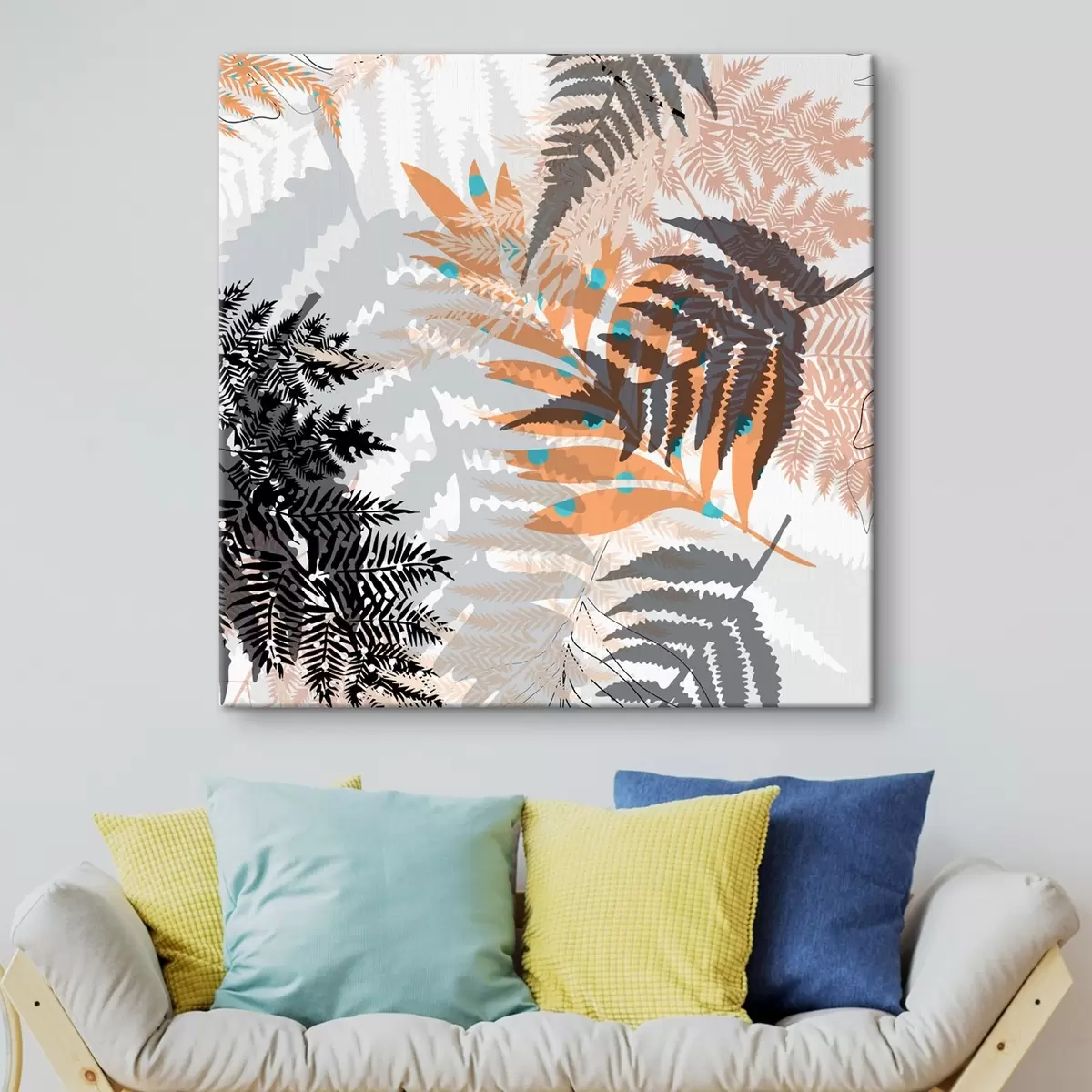 Gemälde dschungel-Laub, moderner Stil, Linienkunst, geschichtete Pflanzen, gedeckte Farben, Natur Art. s45102