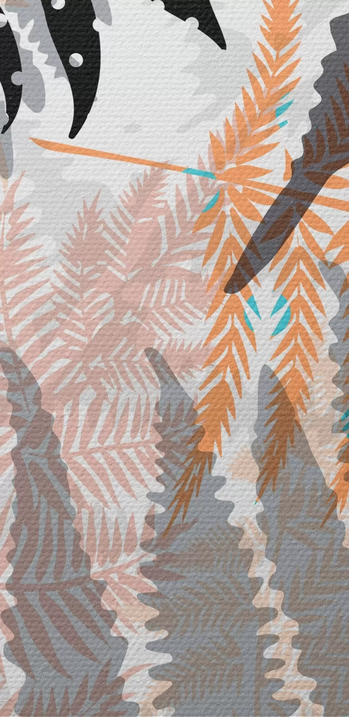 Gemälde tropische Blätter, Grafik, Textur, beige und schwarz, Silhouette, zeitgenössisch, Pflanze Art. s45103