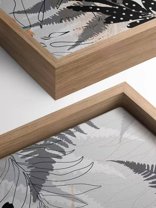 Gemälde naturdruck, dekoratives Blattwerk, Dschungel-Mix, Farnformen, neutrale Farbpalette, Blattkunst Art. s45104