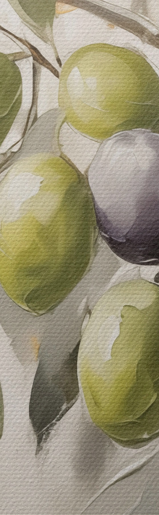 Fototapete grüne Oliven, Zweigdetail, leichter Hintergrund, organisch, natürliche Palette, rustikal s45110