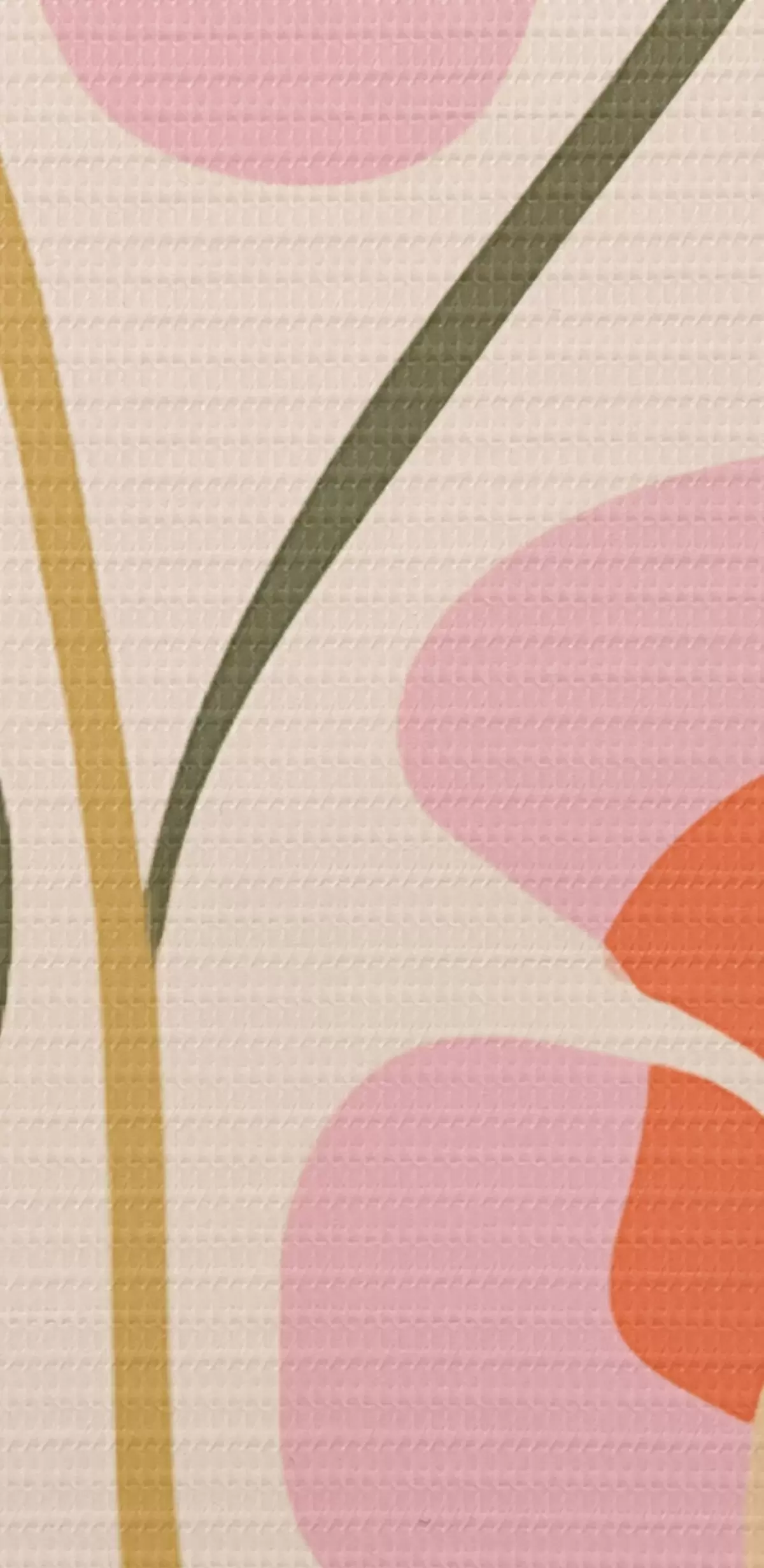 Fototapete Stilisierte rosa und orange Blumen mit grünen Blättern s45140