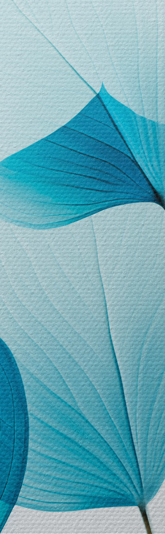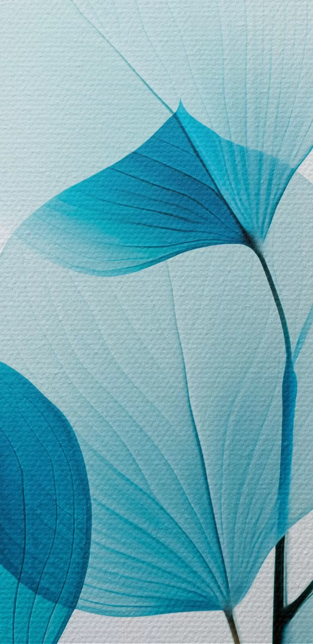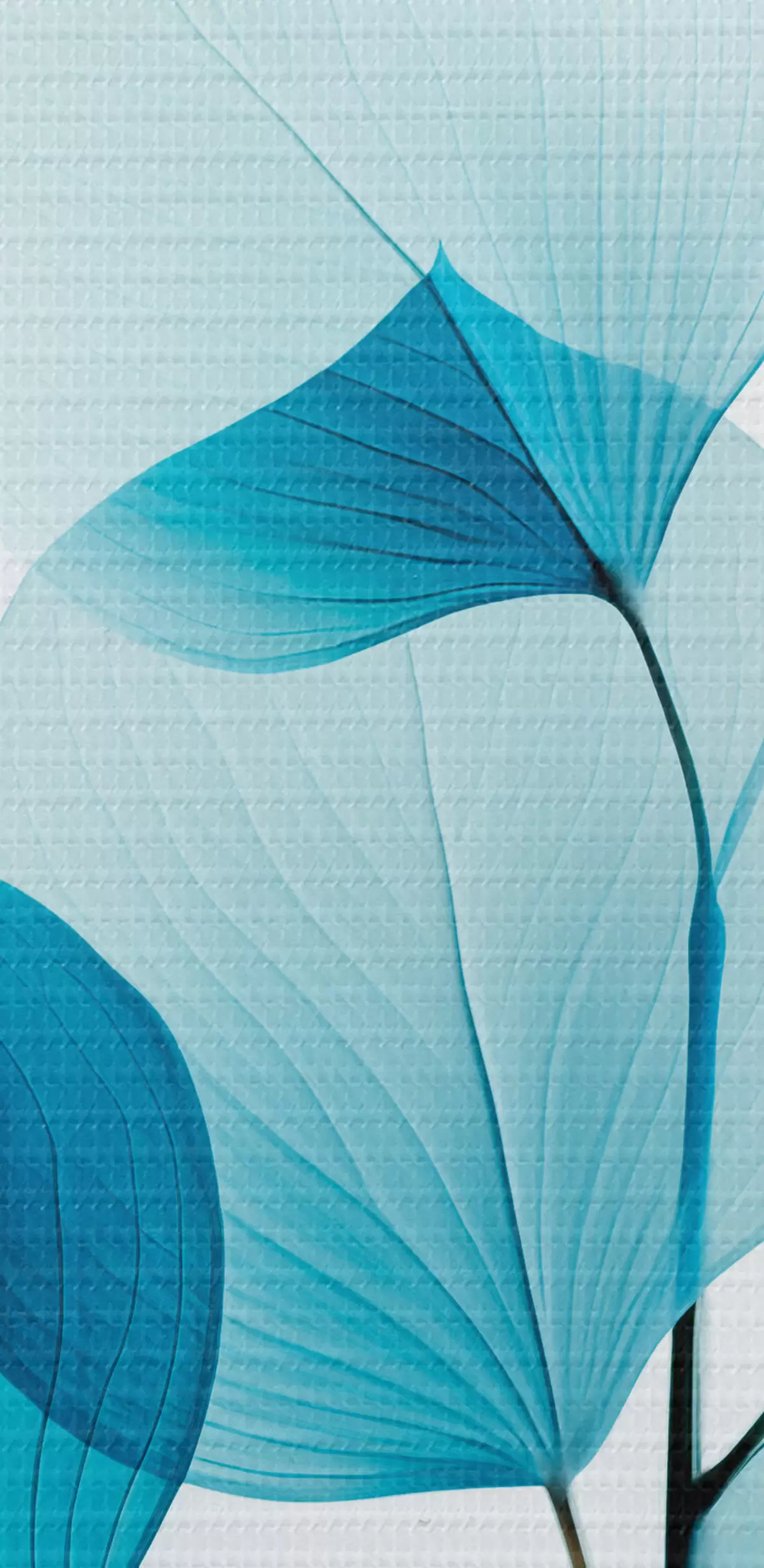 Fototapete Zweig mit durchscheinenden blauen Blättern, zarte Adern sichtbar, leichte und ruhige Komposition, minimalistische Ästhetik s45175