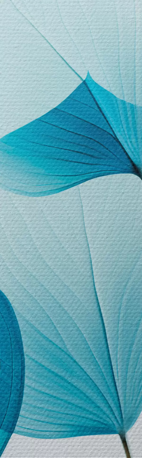 Gemälde Zweig mit durchscheinenden blauen Blättern, zarte Adern sichtbar, leichte und ruhige Komposition, minimalistische Ästhetik Art. s45175