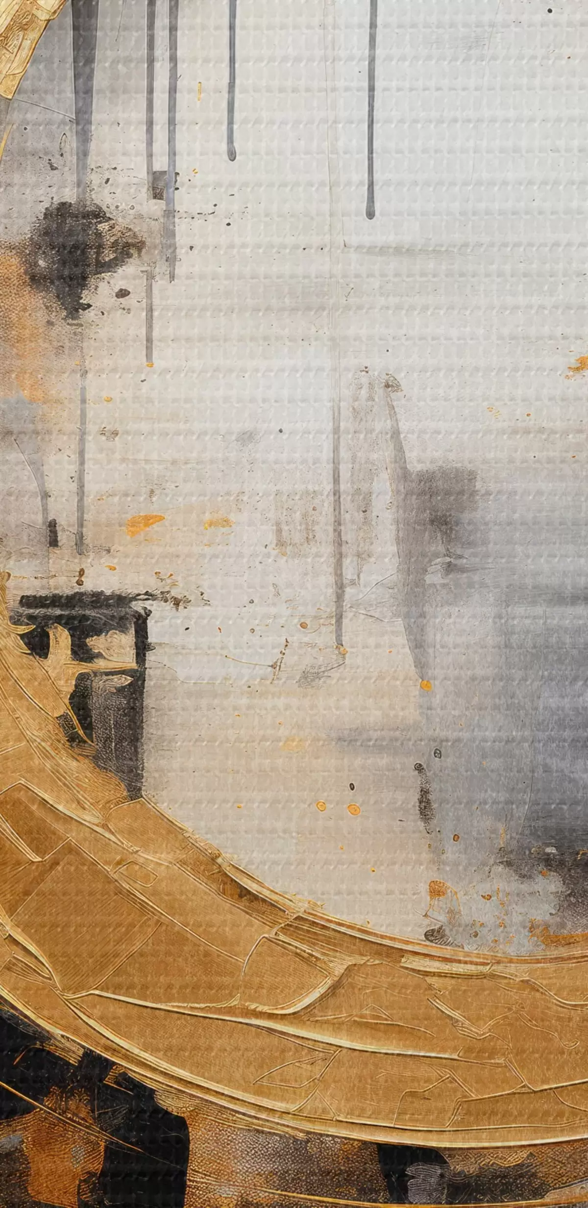 Gemälde Abstrakte Malerei mit Kreisen, schwarzen und gelben Linien und einem Hintergrund mit grauen und weißen Tönen Art. s45186