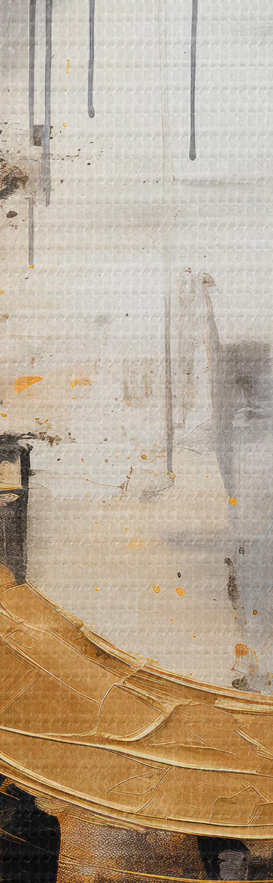 Um die Leinwand auf Keilrahmen zu spannen, ohne das Bild zu beschädigen, verwenden wir ein gespiegeltes Bild.