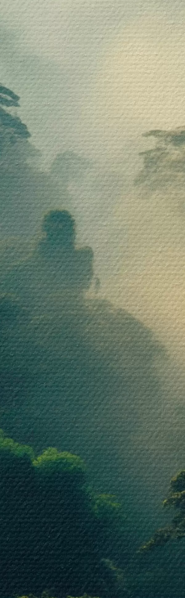 Gemälde Tropischer Regenwald mit üppig grünen Bäumen und einer dicken Nebelschicht, die eine stimmungsvolle Umgebung schafft Art. s45190