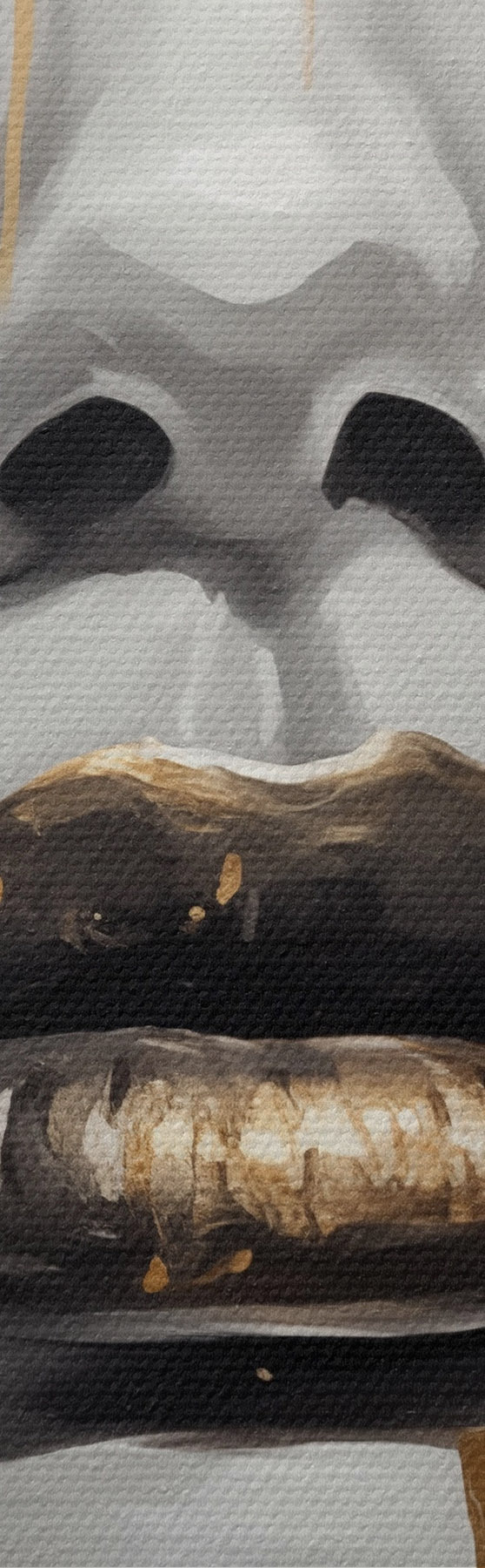 Um die Leinwand auf Keilrahmen zu spannen, ohne das Bild zu beschädigen, verwenden wir ein gespiegeltes Bild.