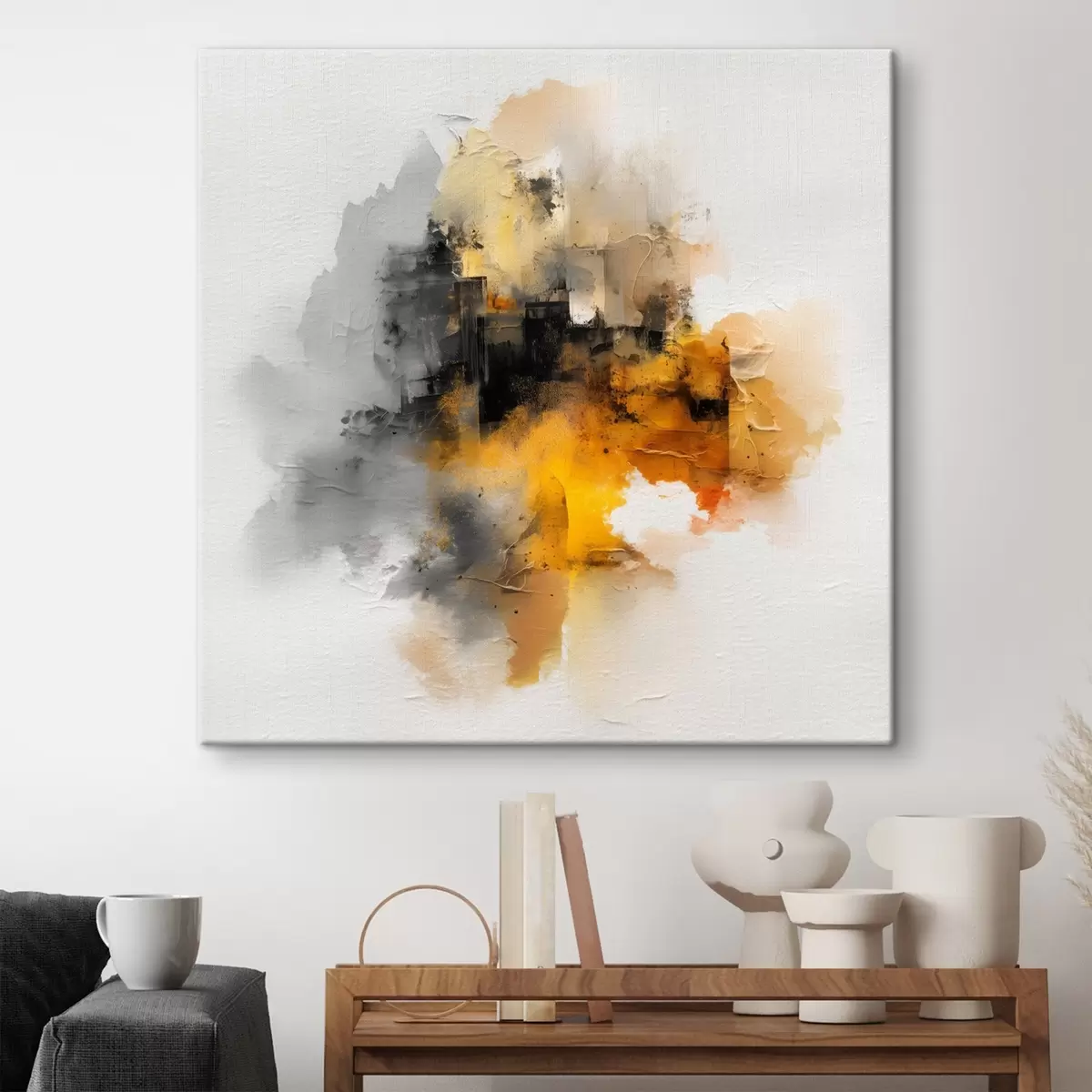 Gemälde Abstrakte Komposition in Orange und Grautönen mit Textur Art. s45238