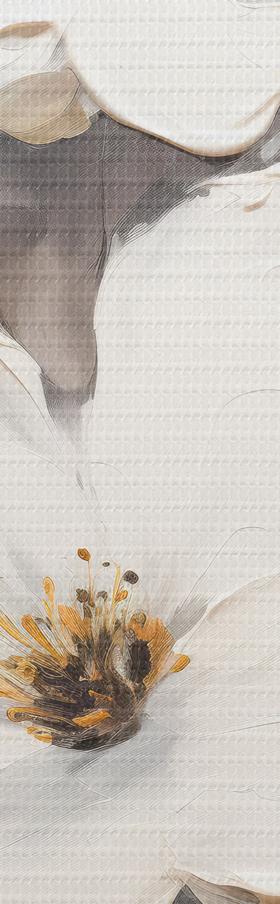 Fototapete Weiße Blumen: volumetrische Malerei auf grauem Hintergrund s45252