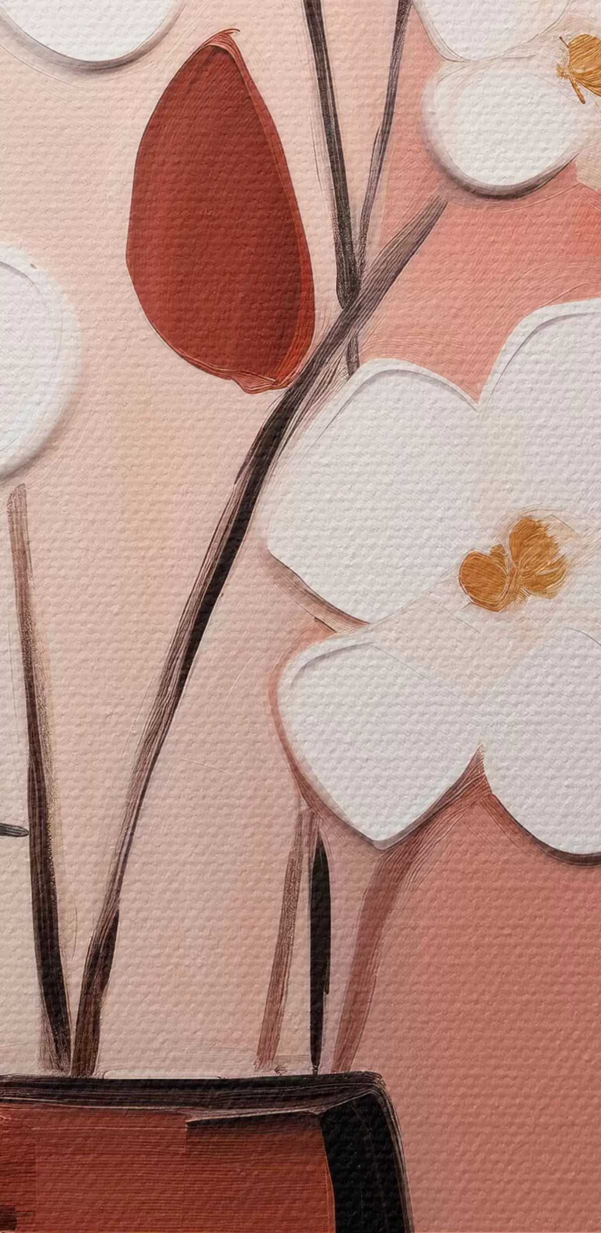 Fototapete Weiße Blumen in einer dunklen Vase: moderne Blumenmalerei s45255