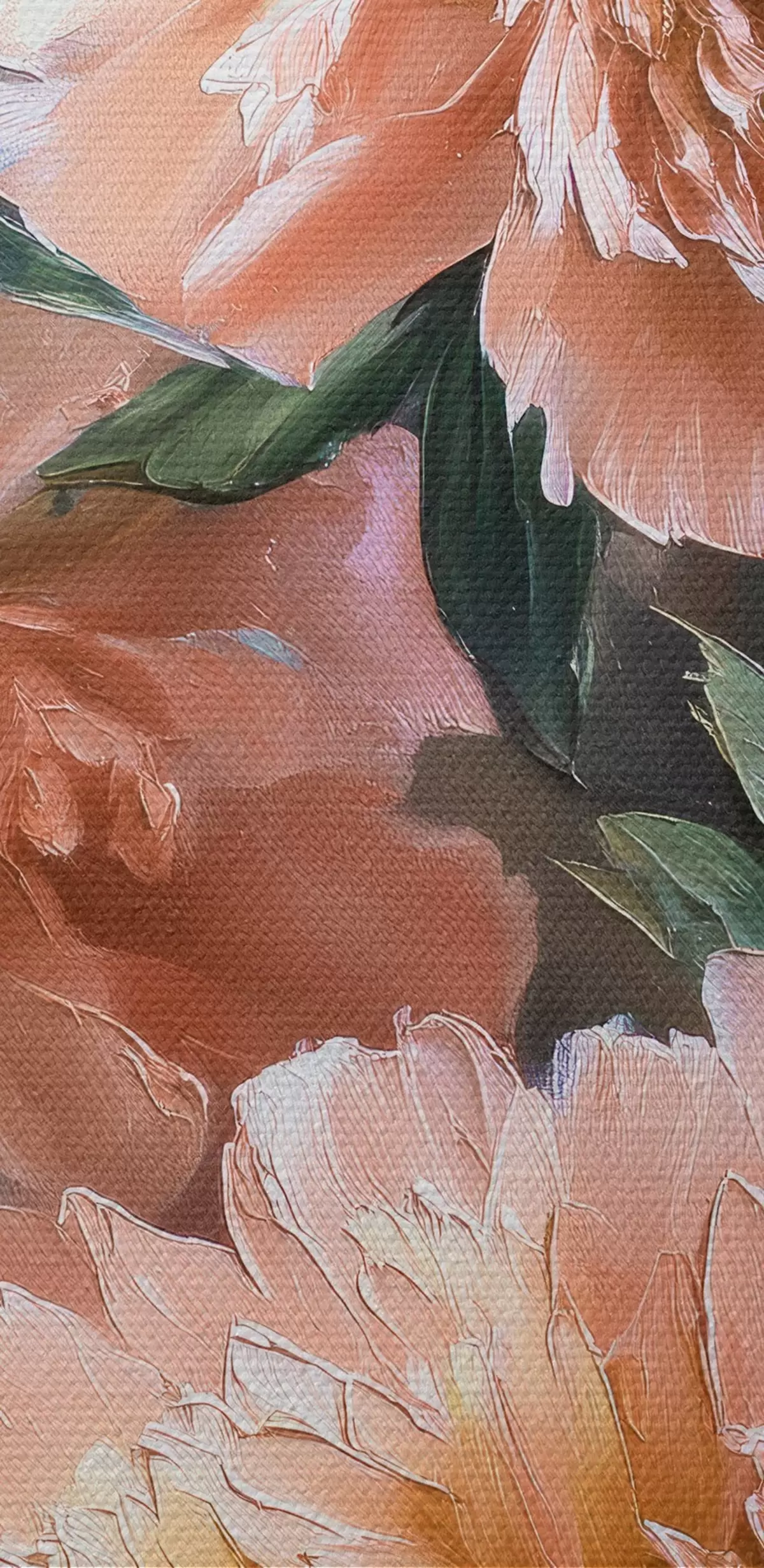 Gemälde Üppige rosa Pfingstrosen auf einem warmtonigen Hintergrund im Pinselstrich-Stil Art. s45260