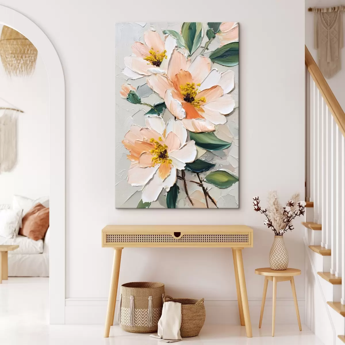 Drei Materialtypen stehen zur Verfügung: Economic Canvas - ein dichtes und haltbares Material für den Digitaldruck, identisch mit Malerleinwand, wasserfeste Oberfläche, realistische Wiedergabe von Details, mittelkörniges Material. Premium Canvas - die Textur ähnelt der einer Malerleinwand (verwobene kleine Fäden). Weiche, detaillierte Wiedergabe des Bildes auf einer matten Oberfläche. Eco-Premium - hochwertiges Gewebe aus 100% Baumwolle. Dank der natürlichen Baumwollfasern ist das Material langlebig und verschleißfest. Hervorragende Farbwiedergabe und Detailtreue.