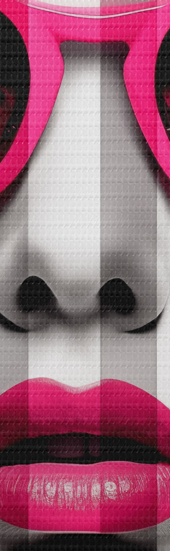 Fototapete Frau mit rosa Brille mit schwarzen und weißen Streifen s45315