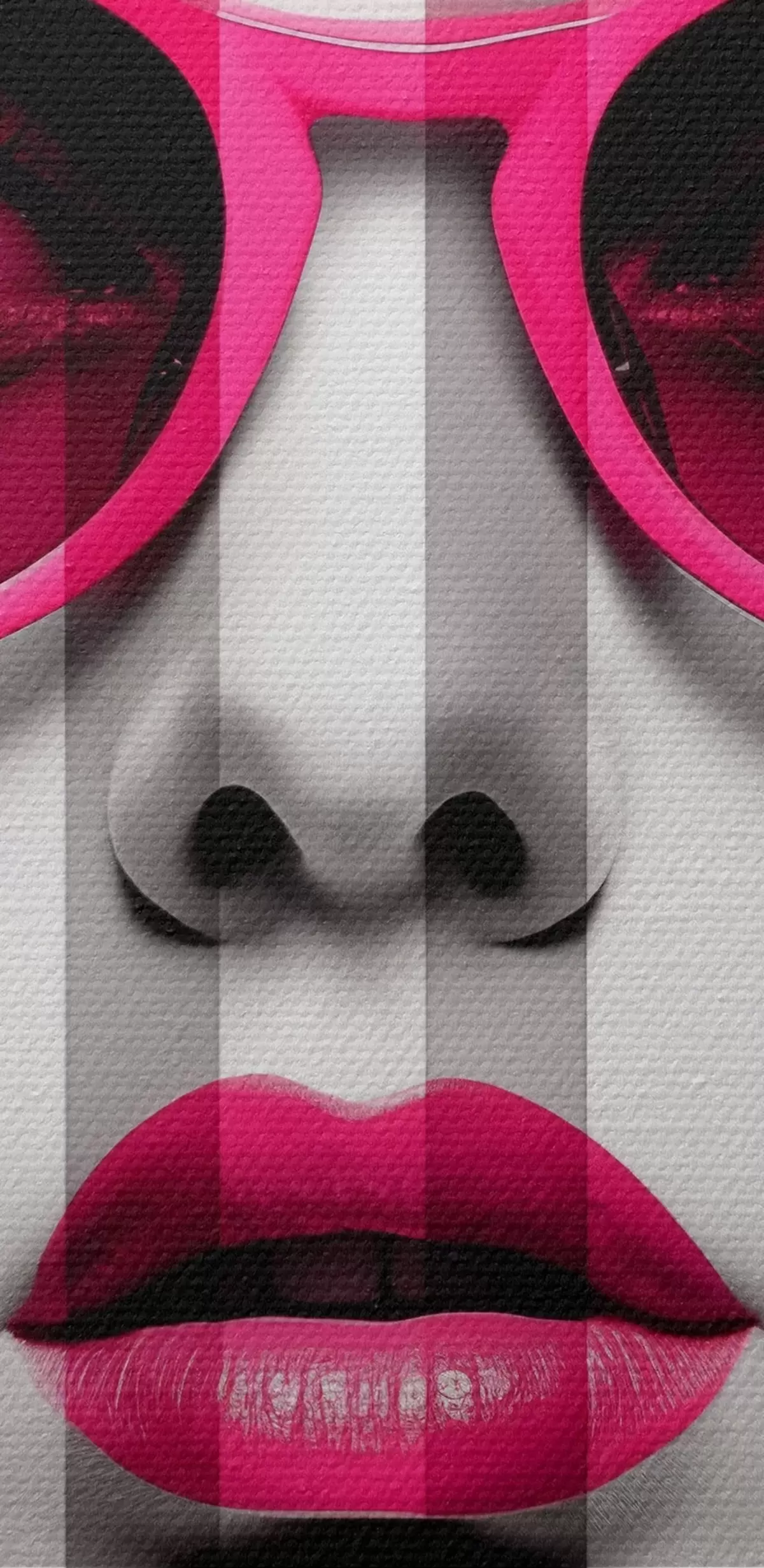 Gemälde Frau mit rosa Brille mit schwarzen und weißen Streifen Art. s45315