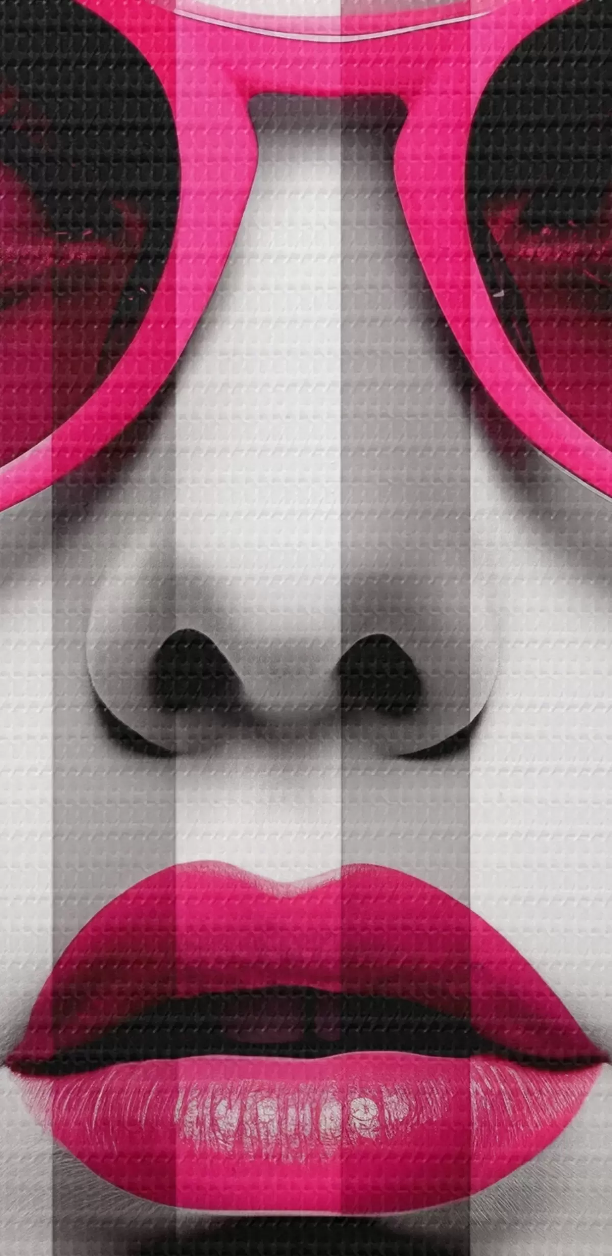 Fototapete Frau mit rosa Brille mit schwarzen und weißen Streifen s45315