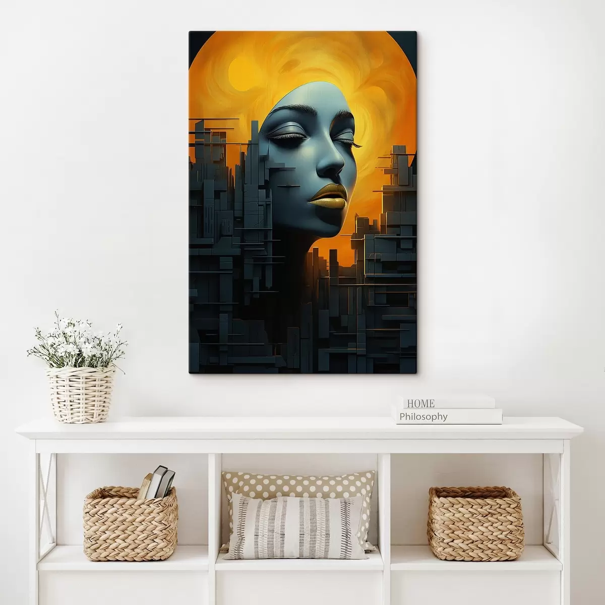 Gemälde Menschen, Mädchen Gesicht Stadt auf einem abstrakten Hintergrund Art. s45342