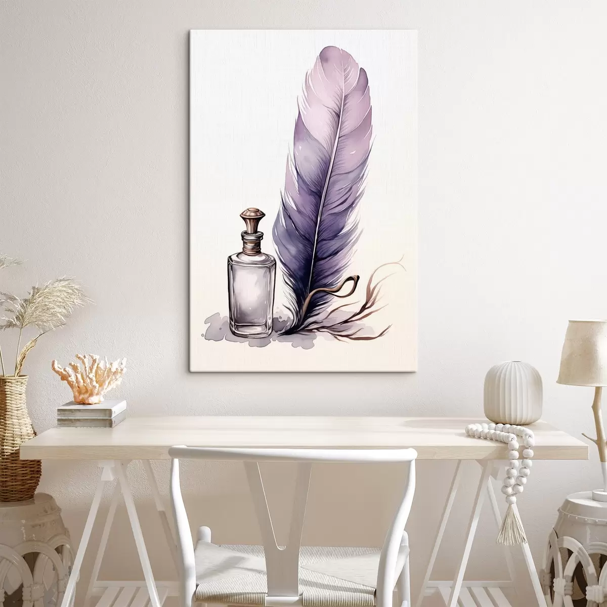 Gemälde Aquarell-Illustration einer Feder und eines Tintenfasses aus Glas Art. s45410