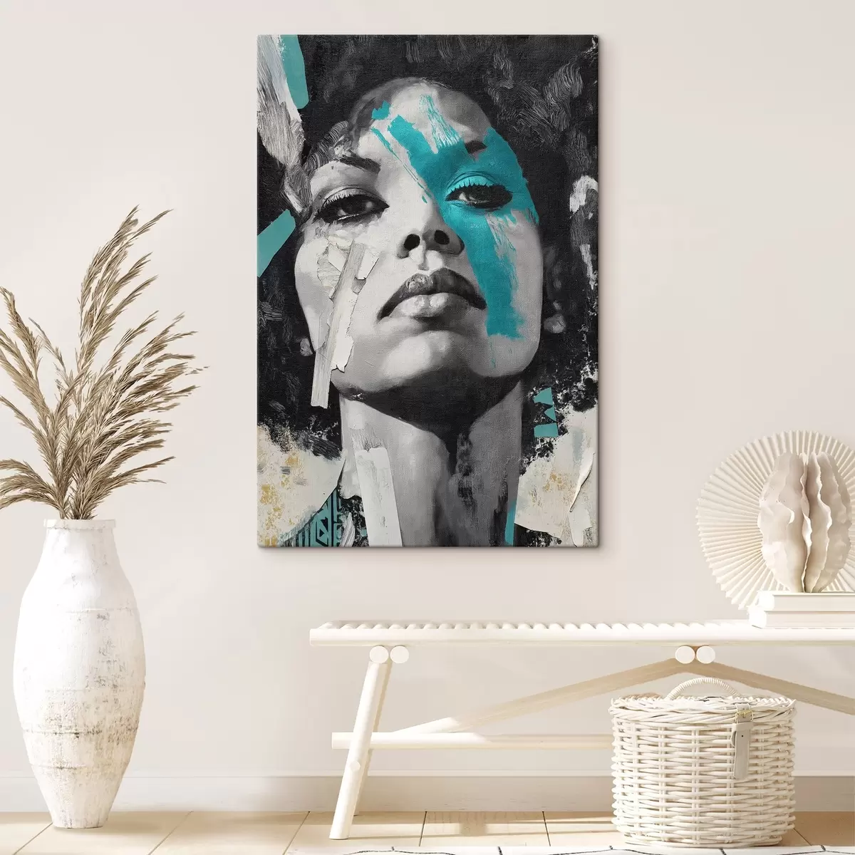 Fototapete Mixed Media Portrait mit Fragmenten von Farbstrichen und Texturen s45416