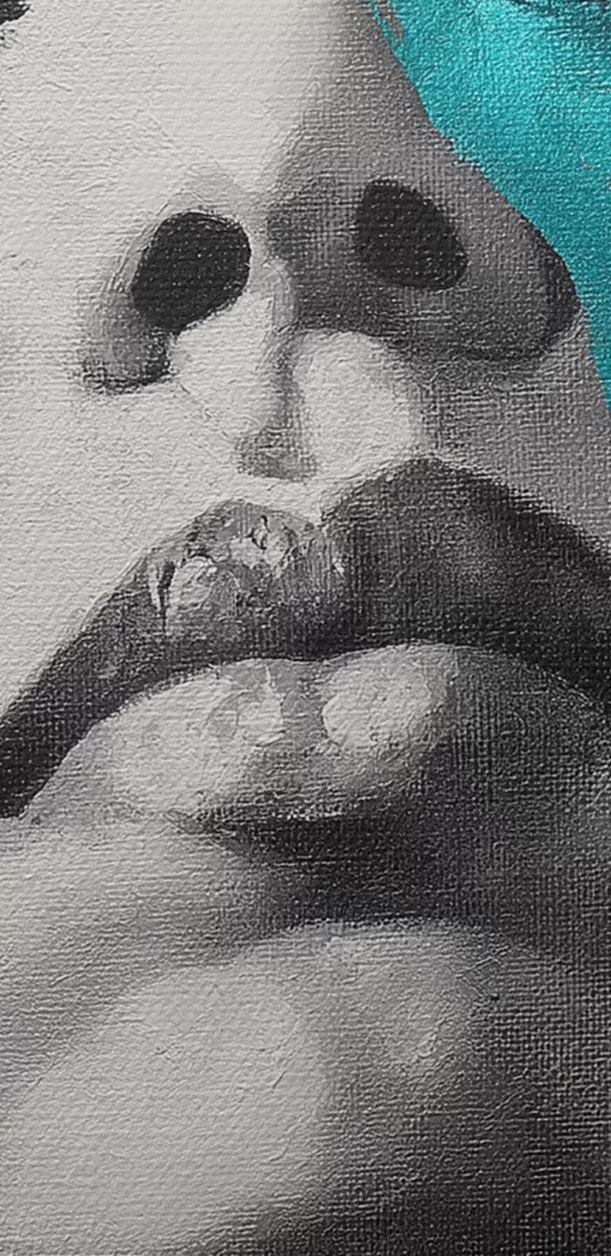 Gemälde Mixed Media Portrait mit Fragmenten von Farbstrichen und Texturen Art. s45416