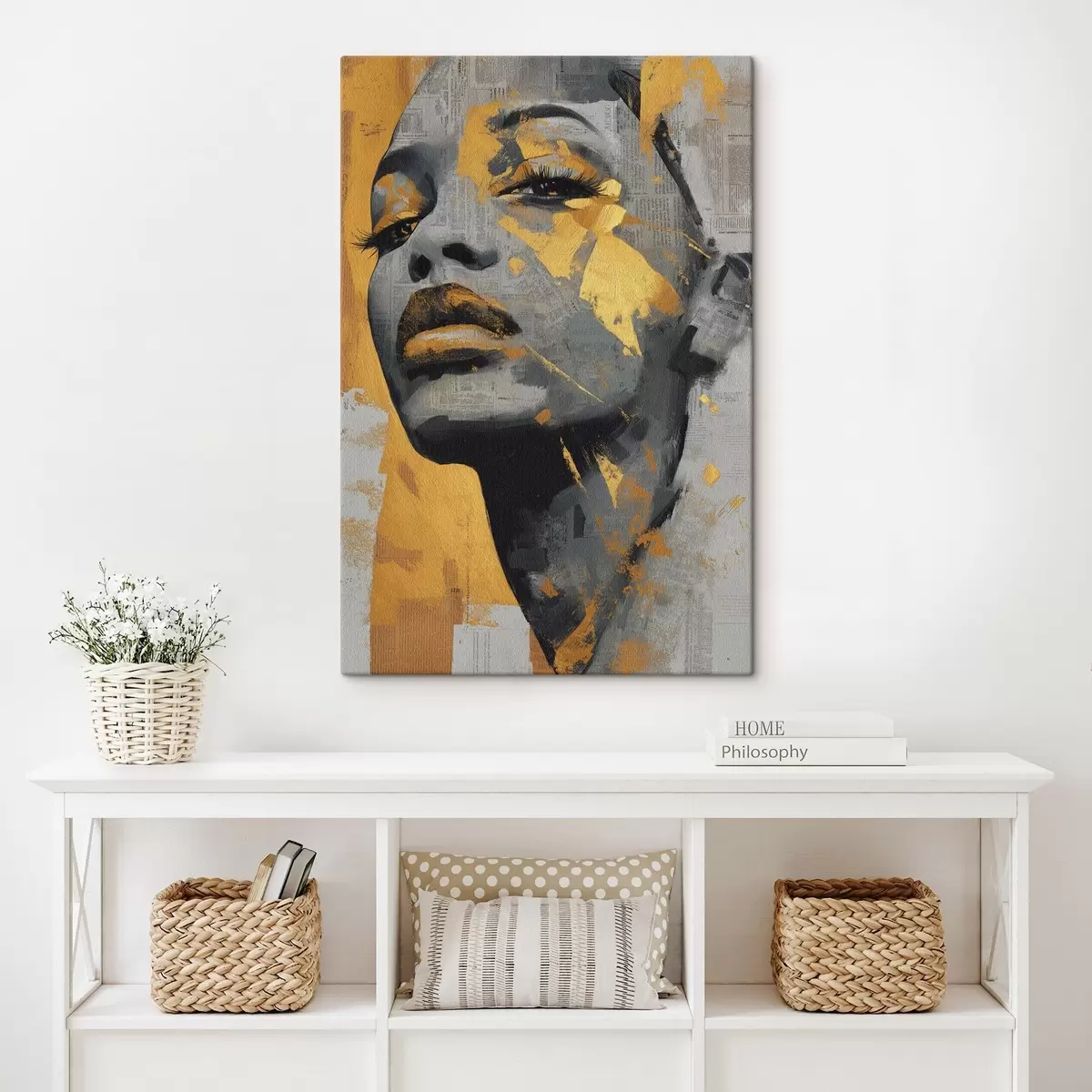 Gemälde Gemischtes Medienporträt mit Zeitungsfragmenten und dekorativen Pinselstrichen Art. s45419