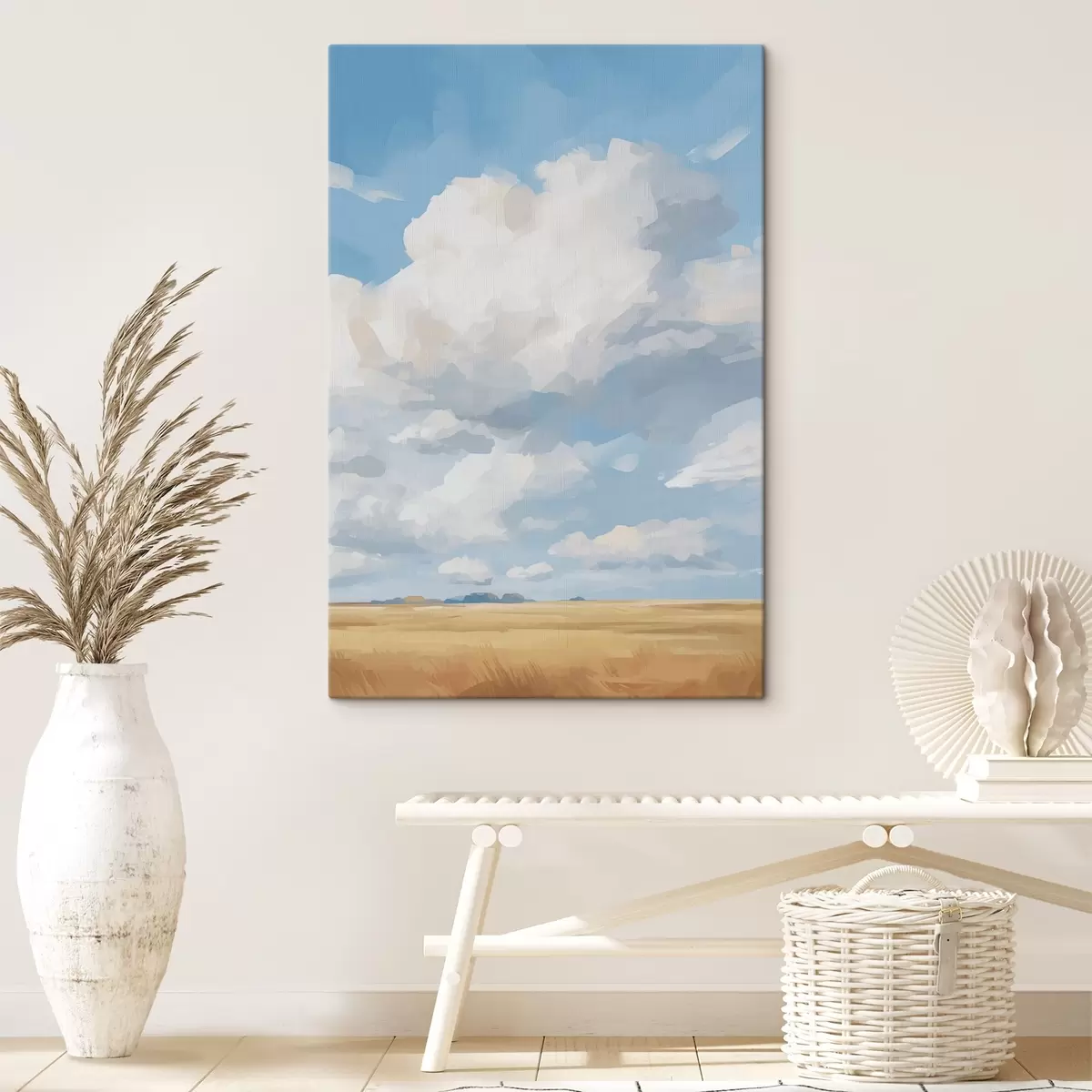 Gemälde Weizenfeld gegen den Himmel mit riesigen Wolken Art. s45454