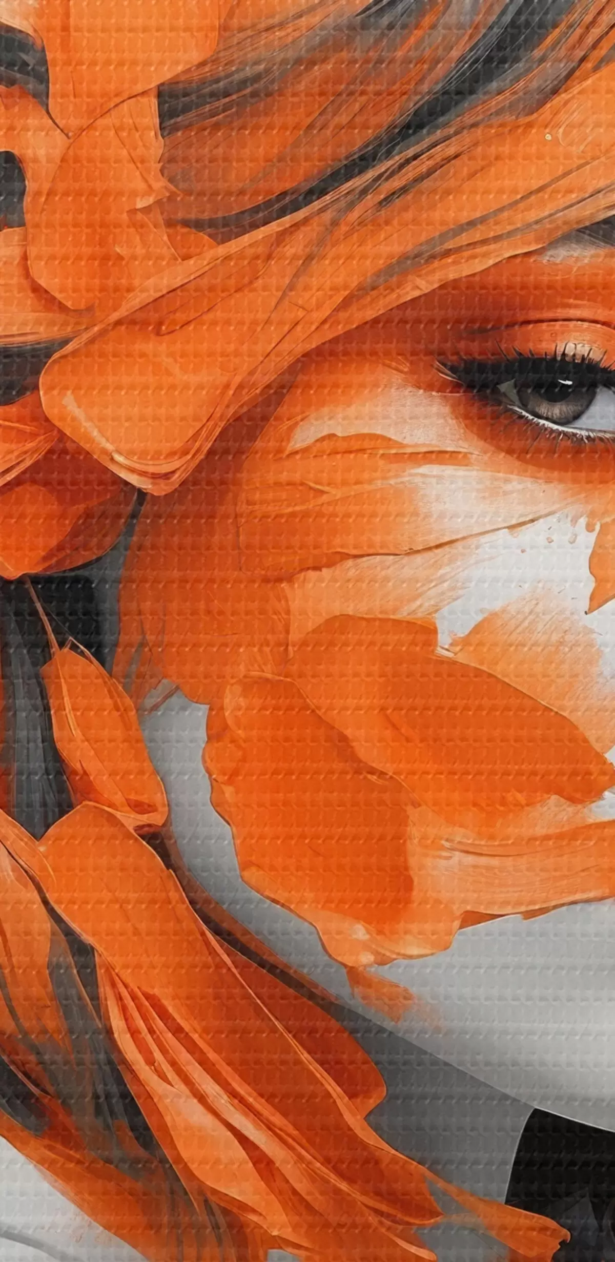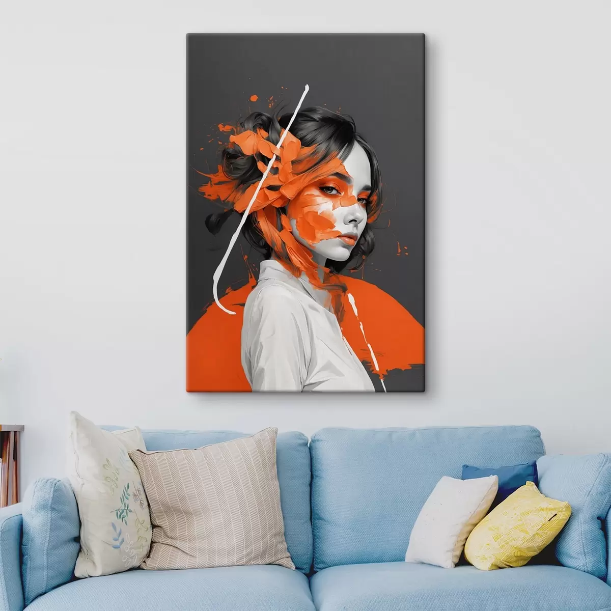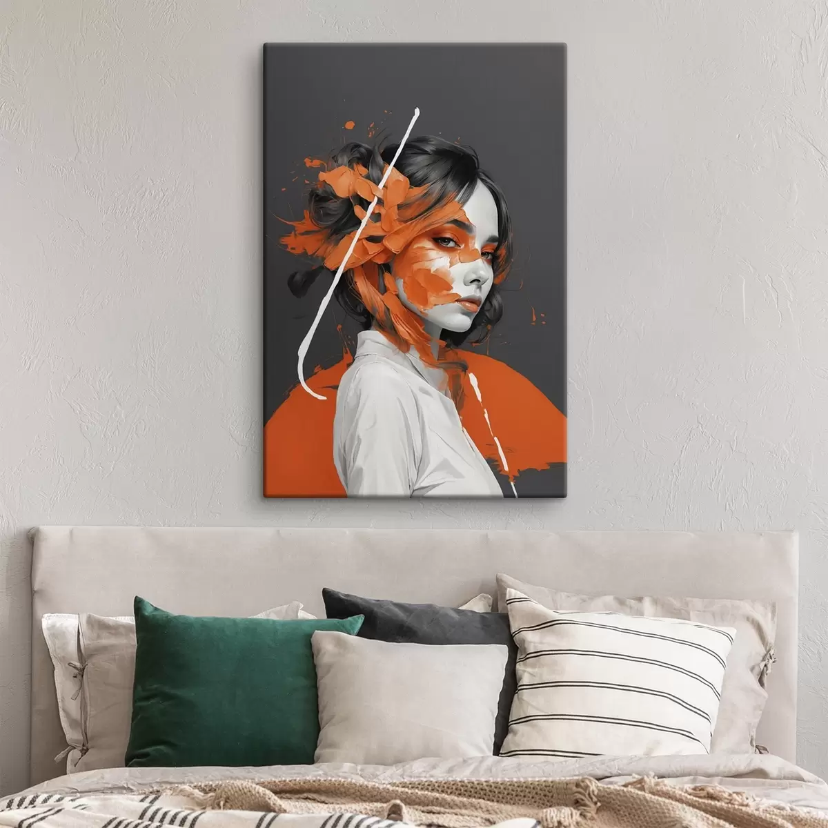 Fototapete Porträt einer Frau mit orangefarbenen Pinselstrichen s45489