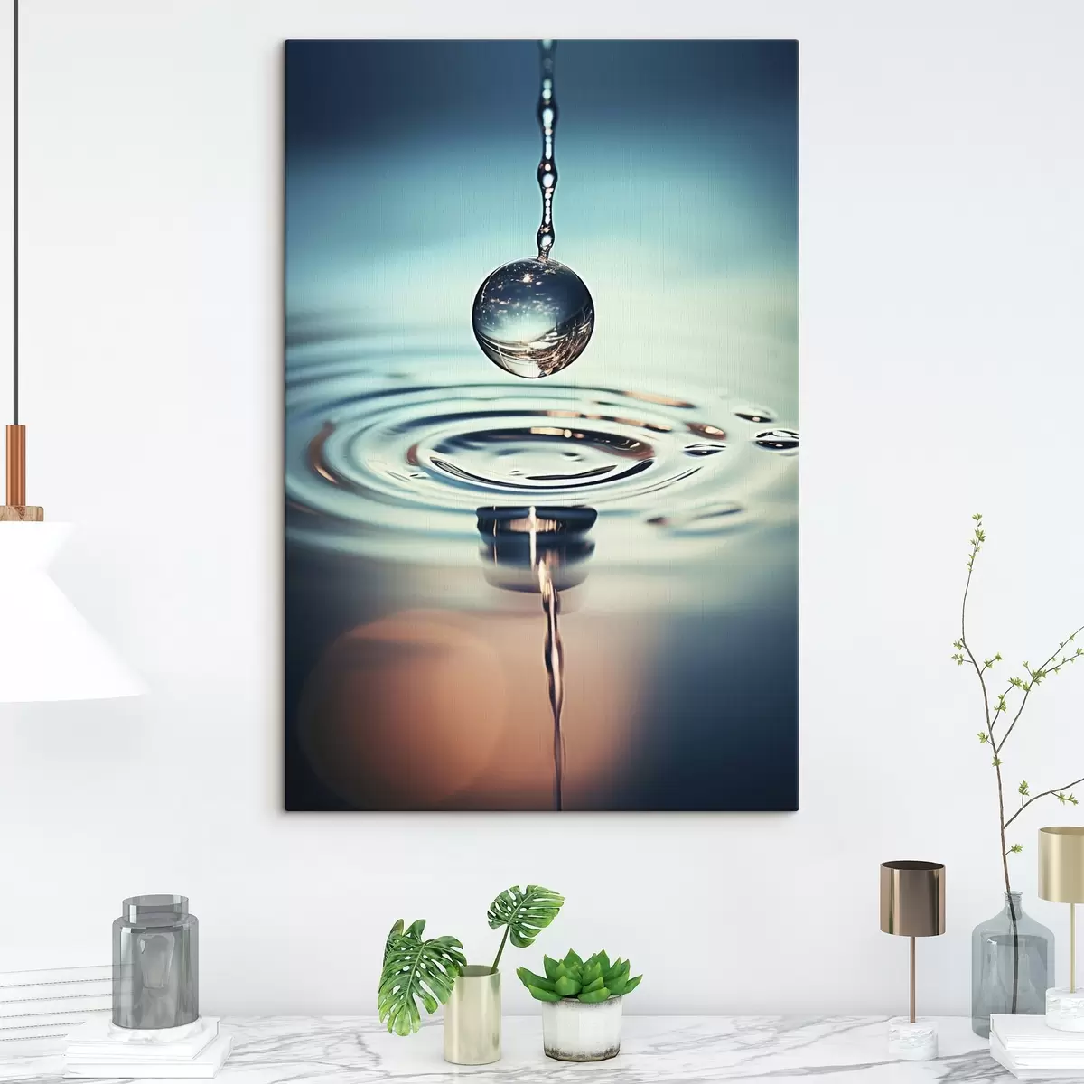 Gemälde Ein Wassertropfen, der mit Lichtblitzen fällt Art. s45501
