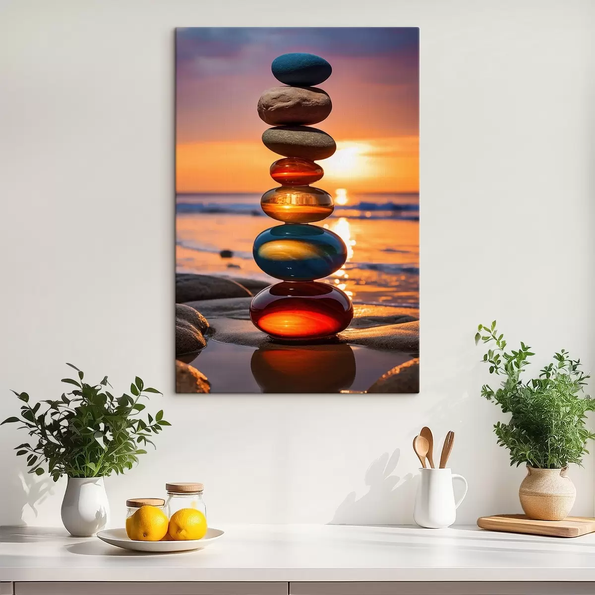 Gemälde Gestapelte Steine vor der Kulisse des Sonnenuntergangs Art. s45520