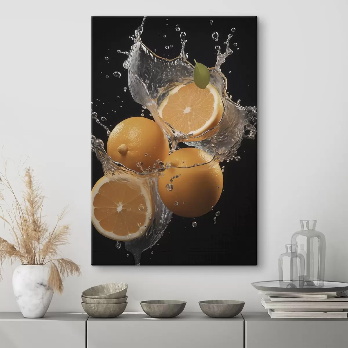 Gemälde Saftige Orangen in Wasserspritzern Art. s45526