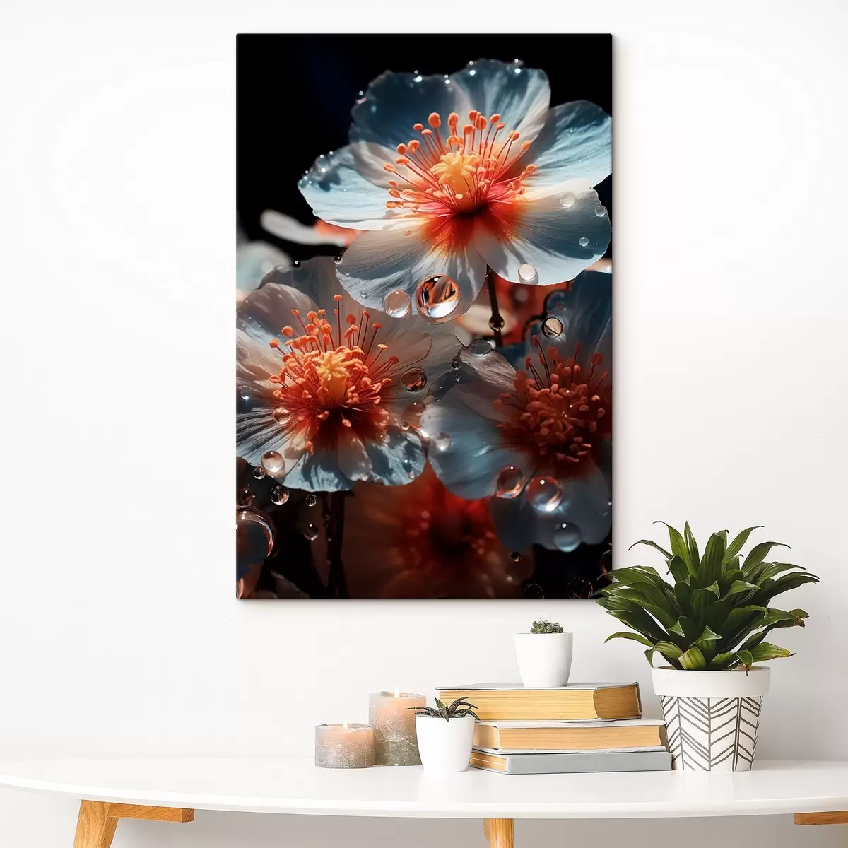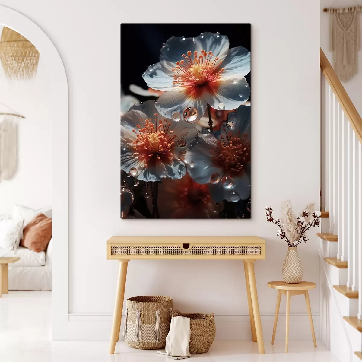 Gemälde Blumenmotiv: Schönheit der Blütenblätter mit Tau auf dunklem Hintergrund Art. s45529