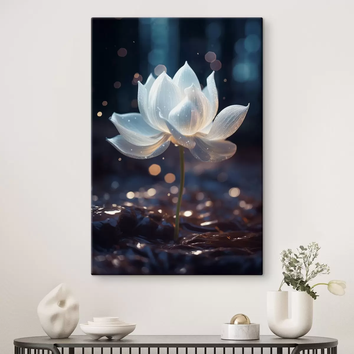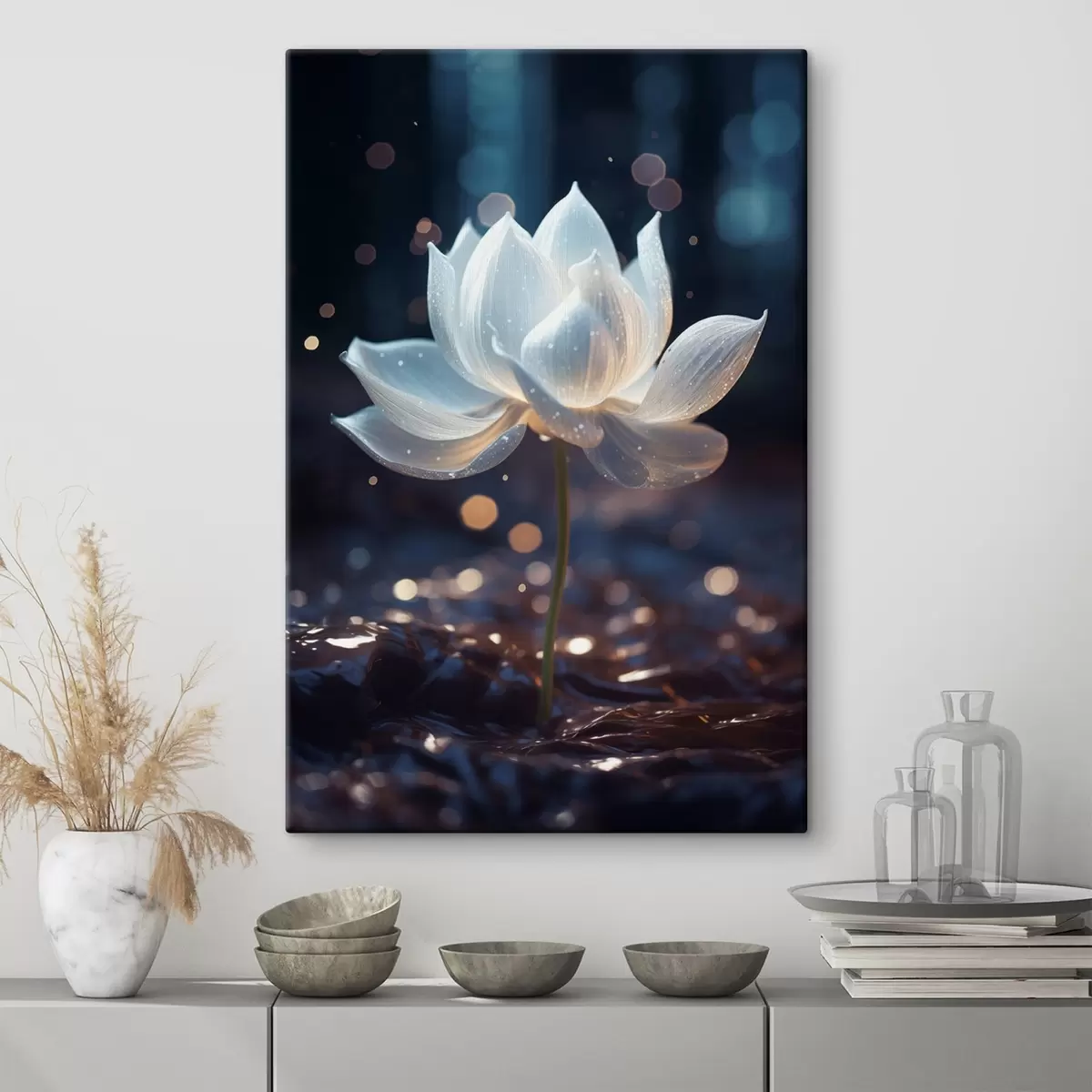 Gemälde Frischer Lotus: Blumenkomposition auf dunklem Hintergrund Art. s45530