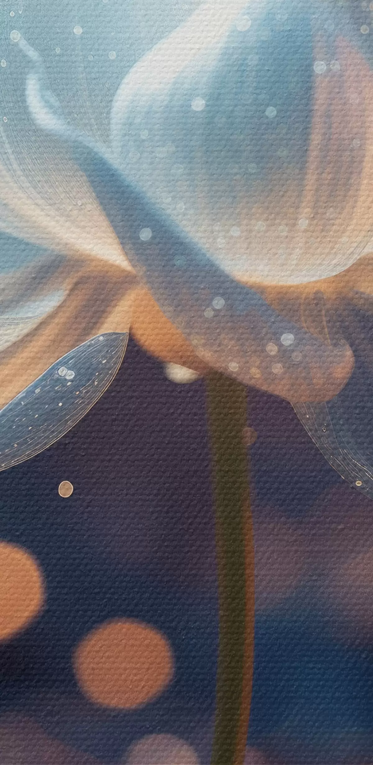 Drei Materialtypen stehen zur Verfügung: Economic Canvas - ein dichtes und haltbares Material für den Digitaldruck, identisch mit Malerleinwand, wasserfeste Oberfläche, realistische Wiedergabe von Details, mittelkörniges Material. Premium Canvas - die Textur ähnelt der einer Malerleinwand (verwobene kleine Fäden). Weiche, detaillierte Wiedergabe des Bildes auf einer matten Oberfläche. Eco-Premium - hochwertiges Gewebe aus 100% Baumwolle. Dank der natürlichen Baumwollfasern ist das Material langlebig und verschleißfest. Hervorragende Farbwiedergabe und Detailtreue.