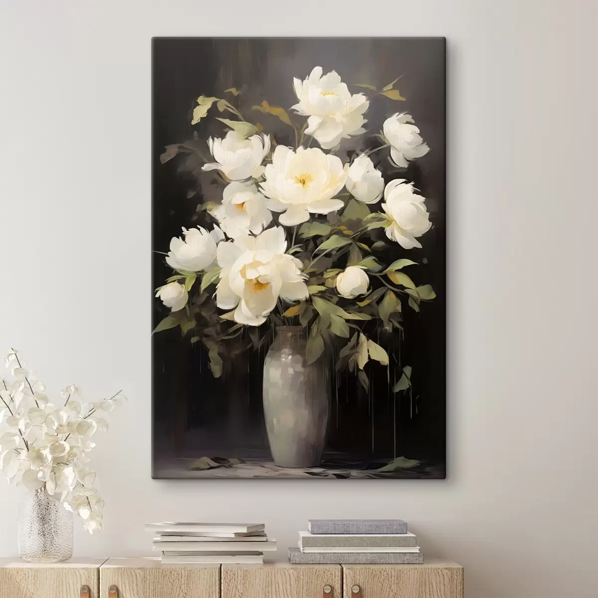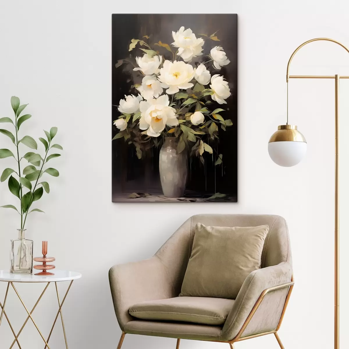 Gemälde Zarte Pfingstrosen in einer Vase: Blumenkomposition im Stil der Malerei Art. s45532