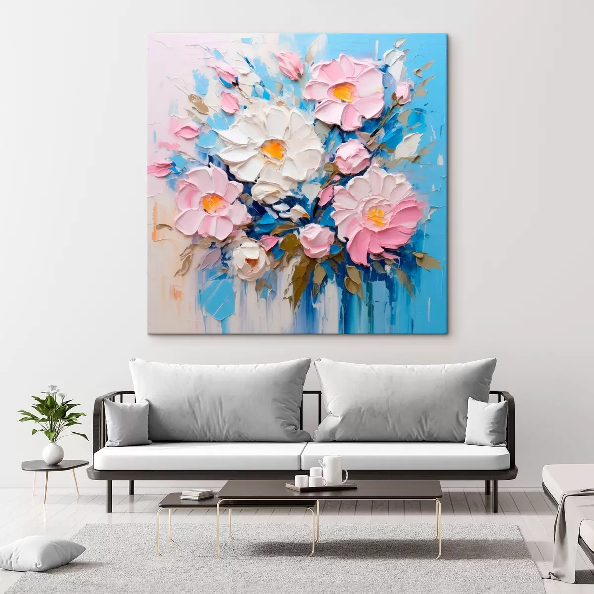 Drei Materialtypen stehen zur Verfügung: Economic Canvas - ein dichtes und haltbares Material für den Digitaldruck, identisch mit Malerleinwand, wasserfeste Oberfläche, realistische Wiedergabe von Details, mittelkörniges Material. Premium Canvas - die Textur ähnelt der einer Malerleinwand (verwobene kleine Fäden). Weiche, detaillierte Wiedergabe des Bildes auf einer matten Oberfläche. Eco-Premium - hochwertiges Gewebe aus 100% Baumwolle. Dank der natürlichen Baumwollfasern ist das Material langlebig und verschleißfest. Hervorragende Farbwiedergabe und Detailtreue.