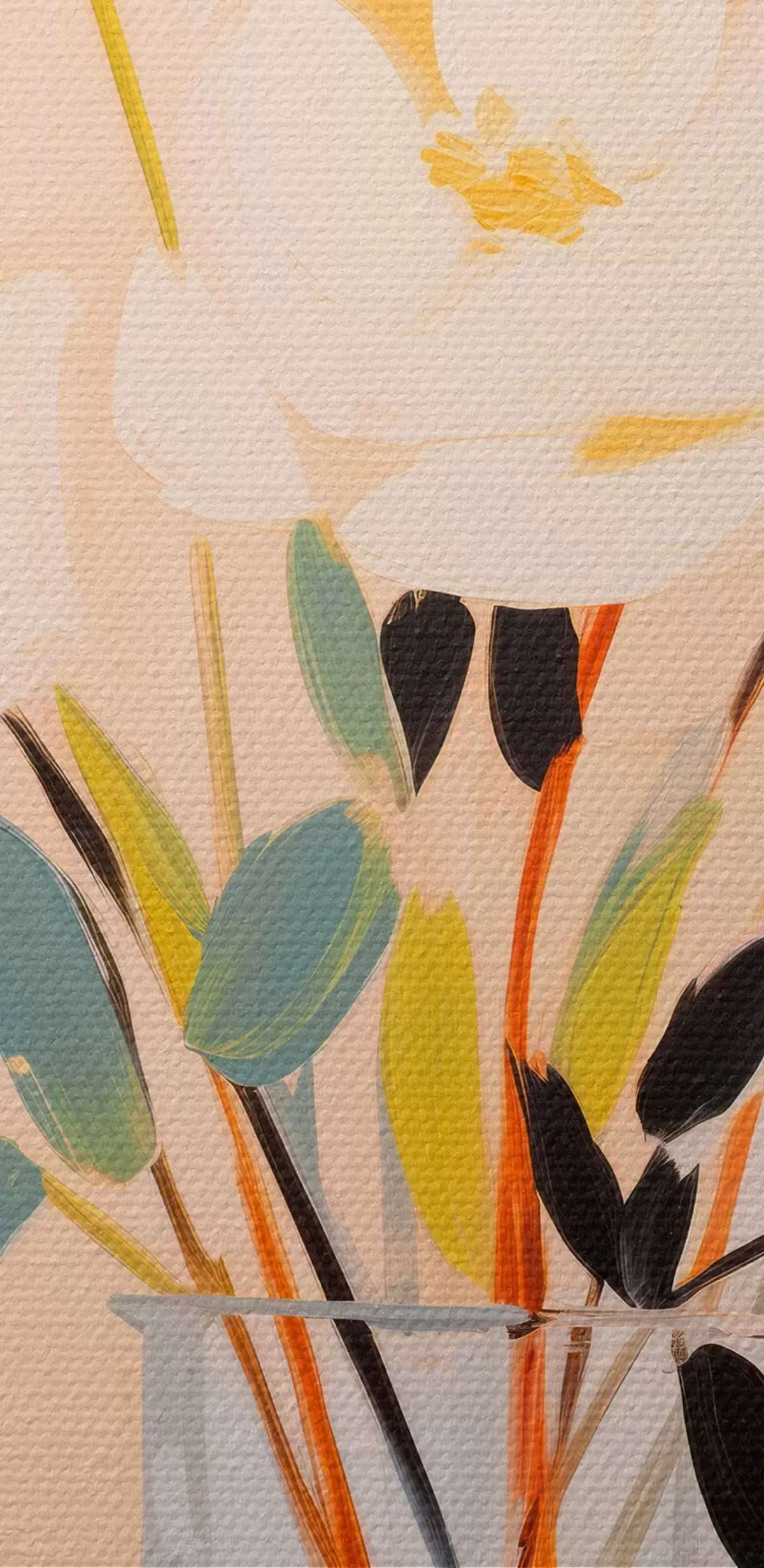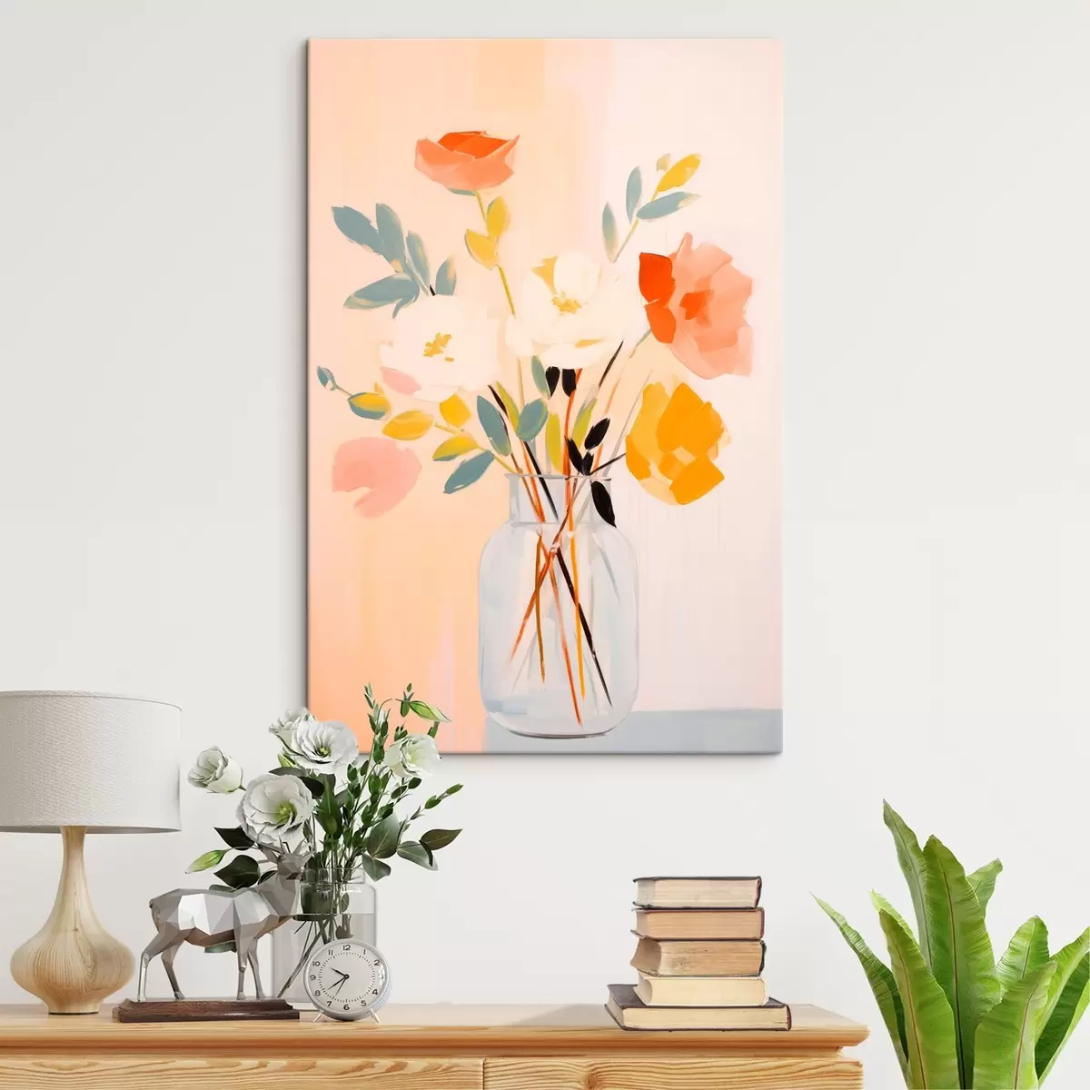 Gemälde Dekorative Blumen: abstrakter Blumenstrauß in einer Vase auf einem hellen Hintergrund Art. s45539