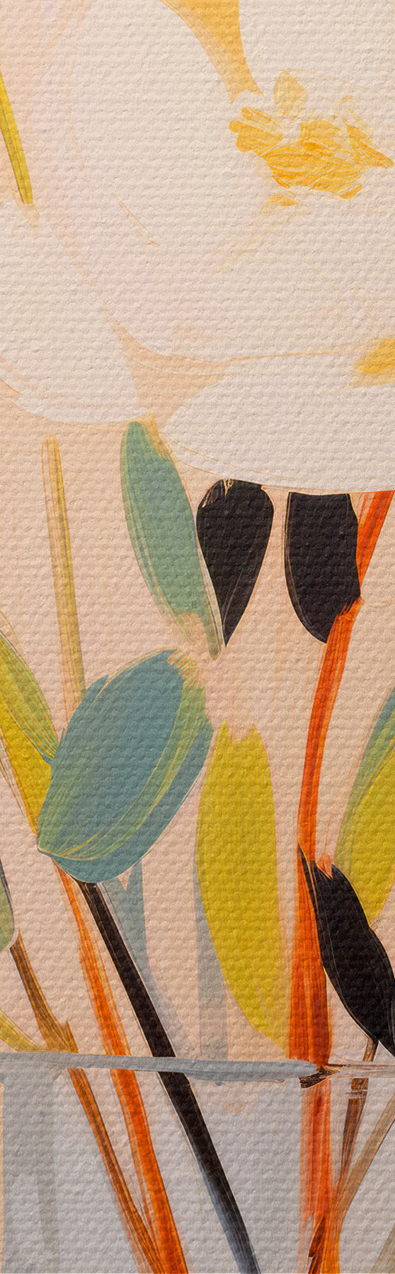 Um die Leinwand auf Keilrahmen zu spannen, ohne das Bild zu beschädigen, verwenden wir ein gespiegeltes Bild.