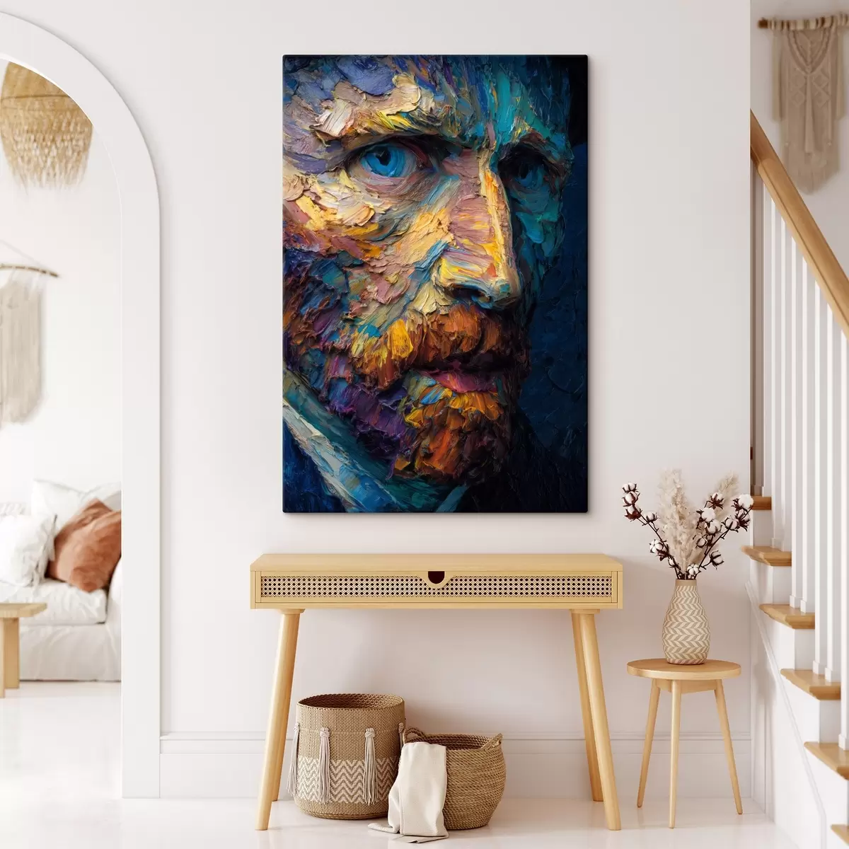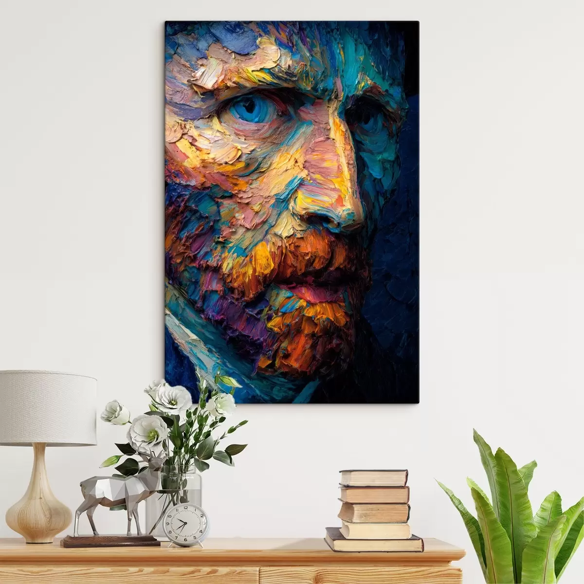 Gemälde Dekoratives Van-Gogh-Porträt: Reliefmalerei in Blau- und Orangetönen Art. s45546