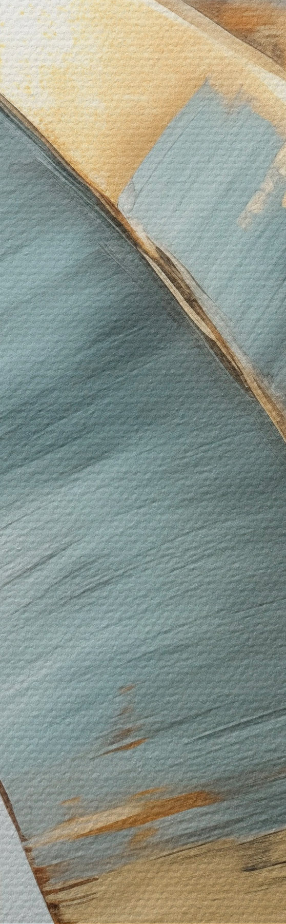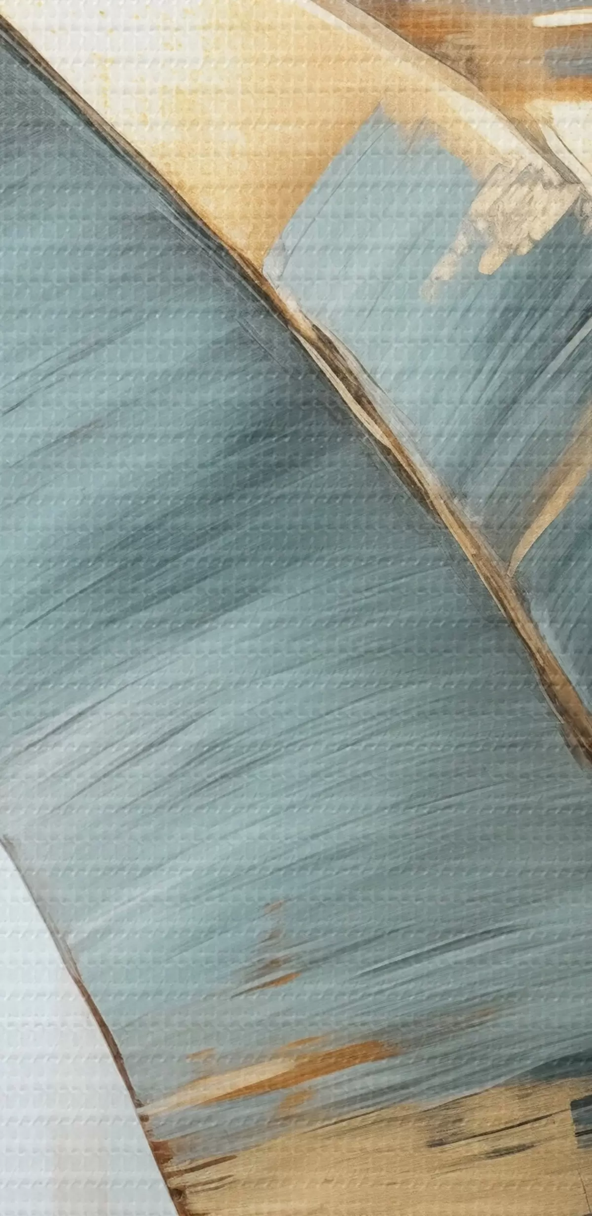 Fototapete Eine Reihe von gedämpften blauen, grauen und gelben Bananenblättern mit sichtbaren Pinselstrichen vor einem weißen abstrakten Hintergrund s45551