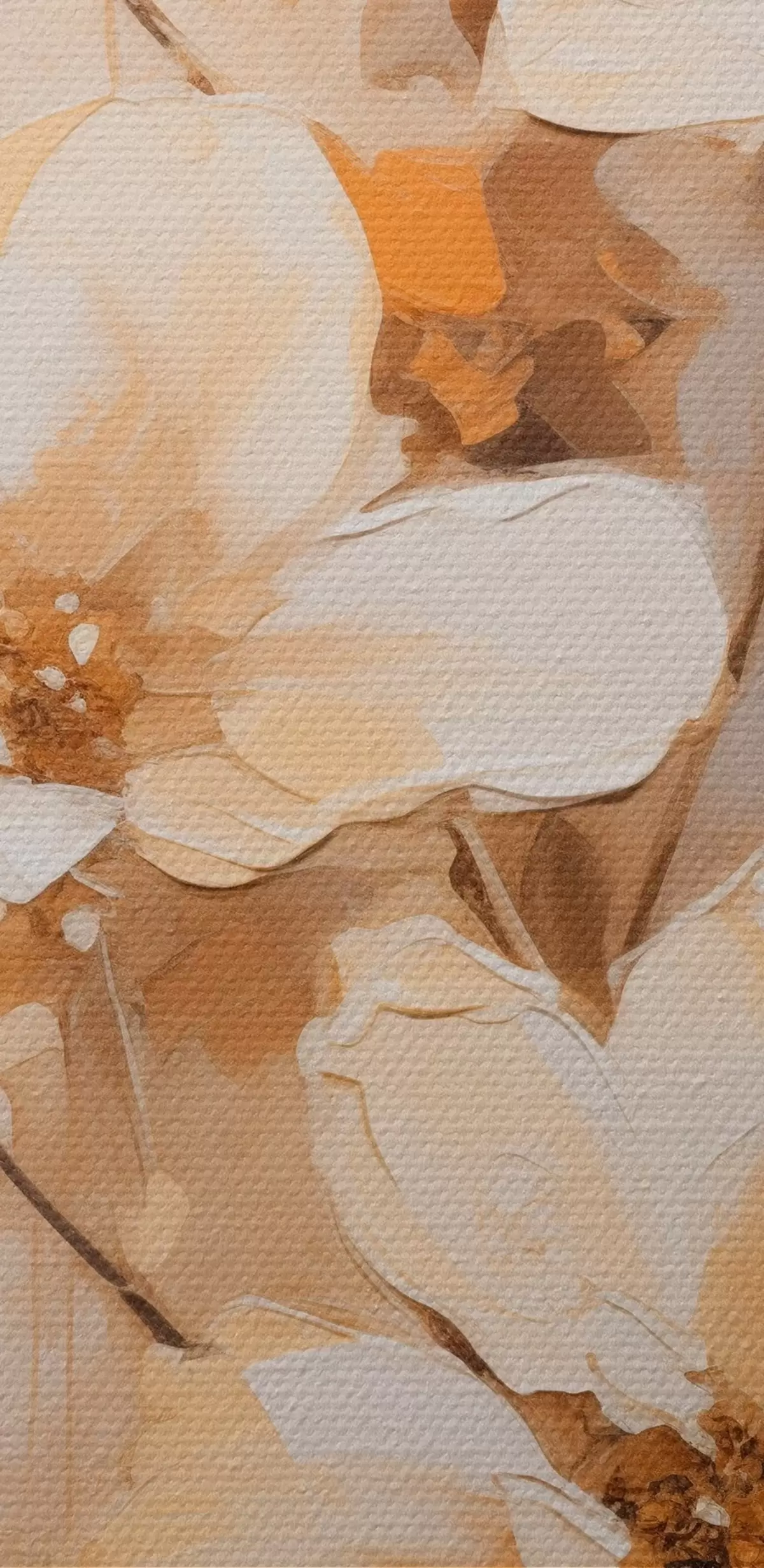 Fototapete Weiße Blumen mit orangefarbenen Blättern, zarte Pinselstriche, Blumenarrangement, botanische Kunst  s45574