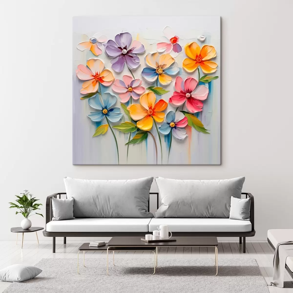 Gemälde Blumenstillleben: mehrfarbige Blumen in Impasto-Technik Art. s45598