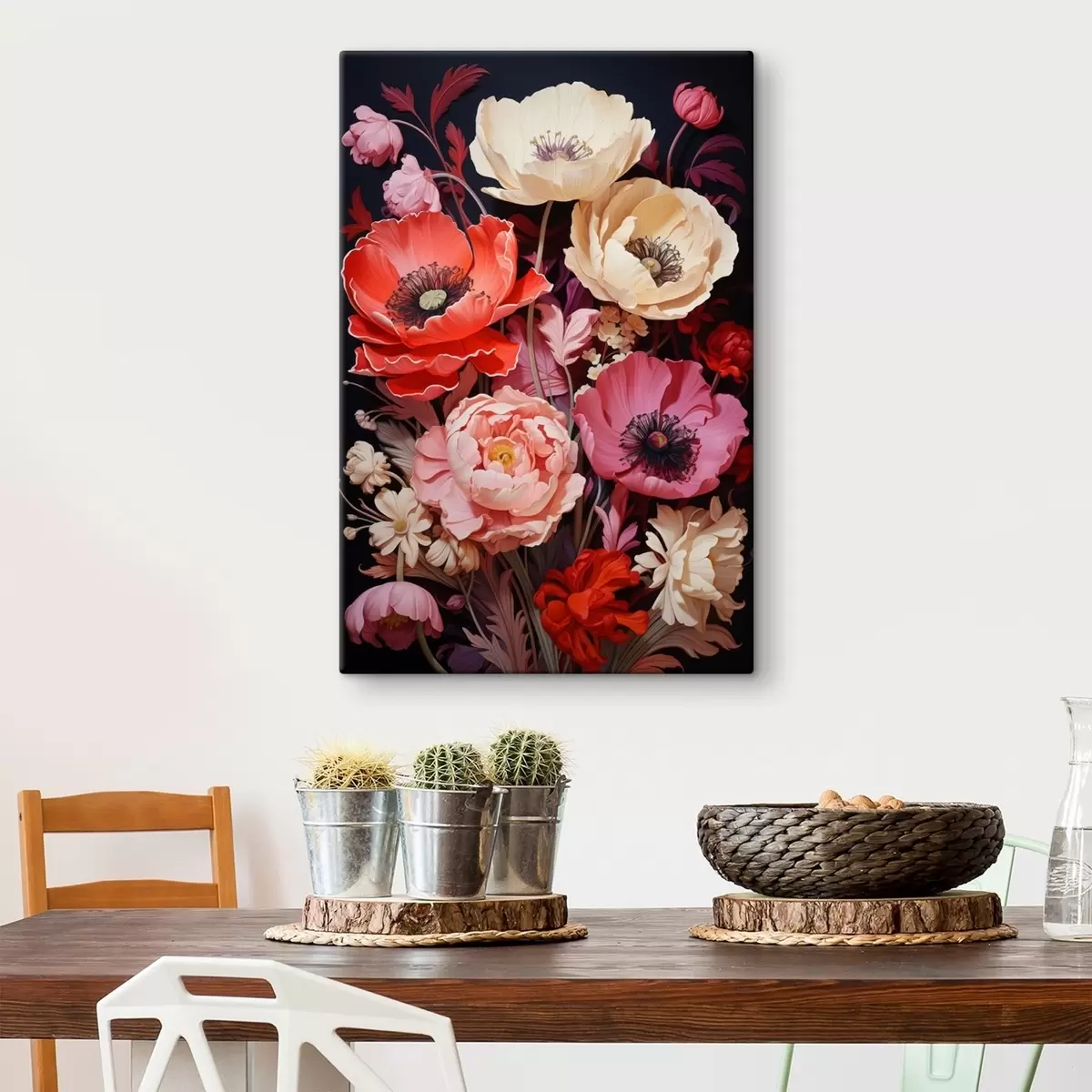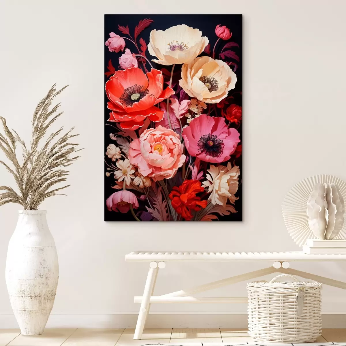 Gemälde Blumenstrauß aus Mohnblumen in rosa und roten Farbtönen Art. s45600