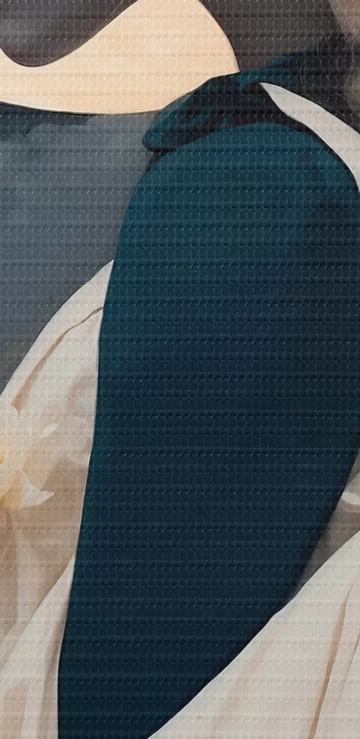 Um die Leinwand auf Keilrahmen zu spannen, ohne das Bild zu beschädigen, verwenden wir ein gespiegeltes Bild.