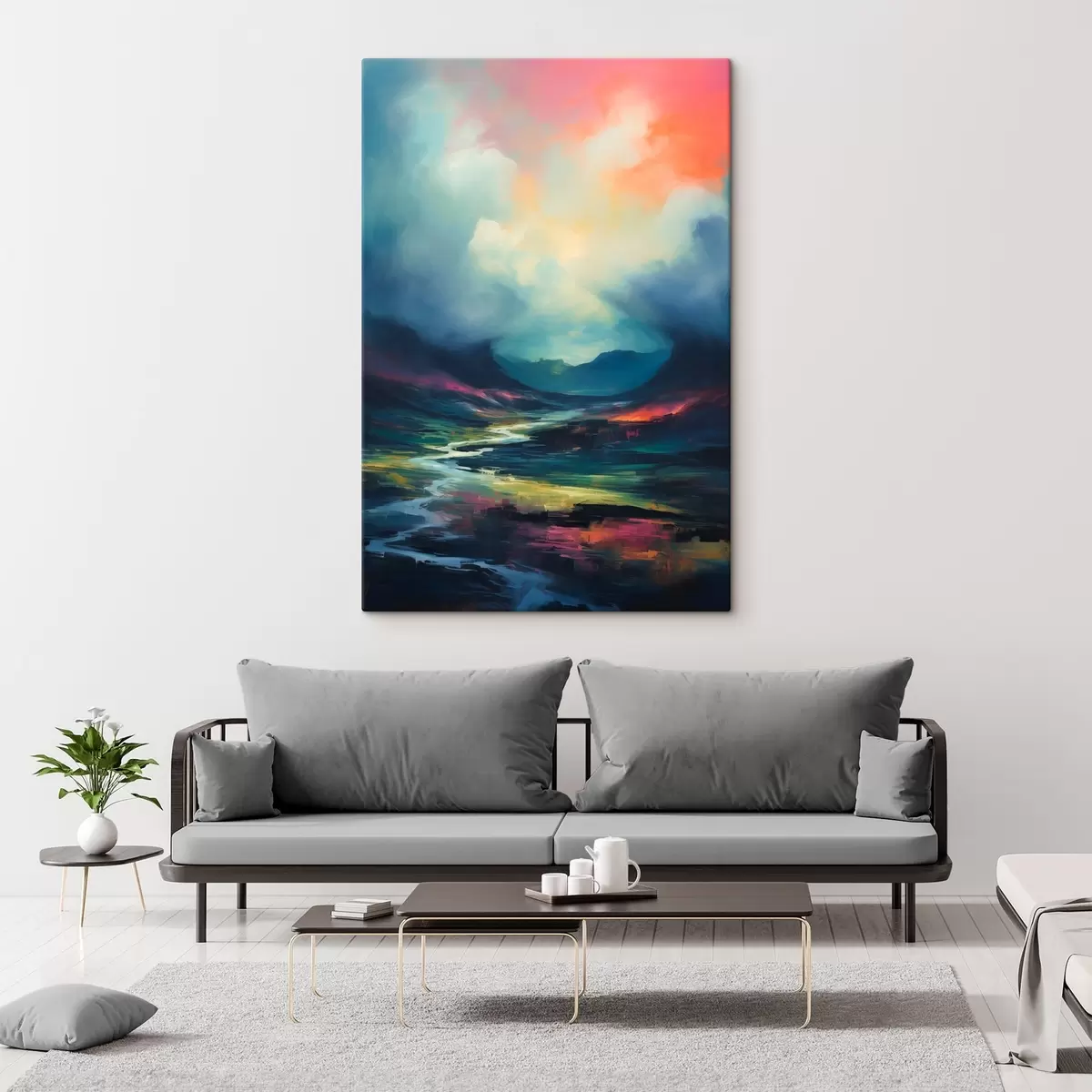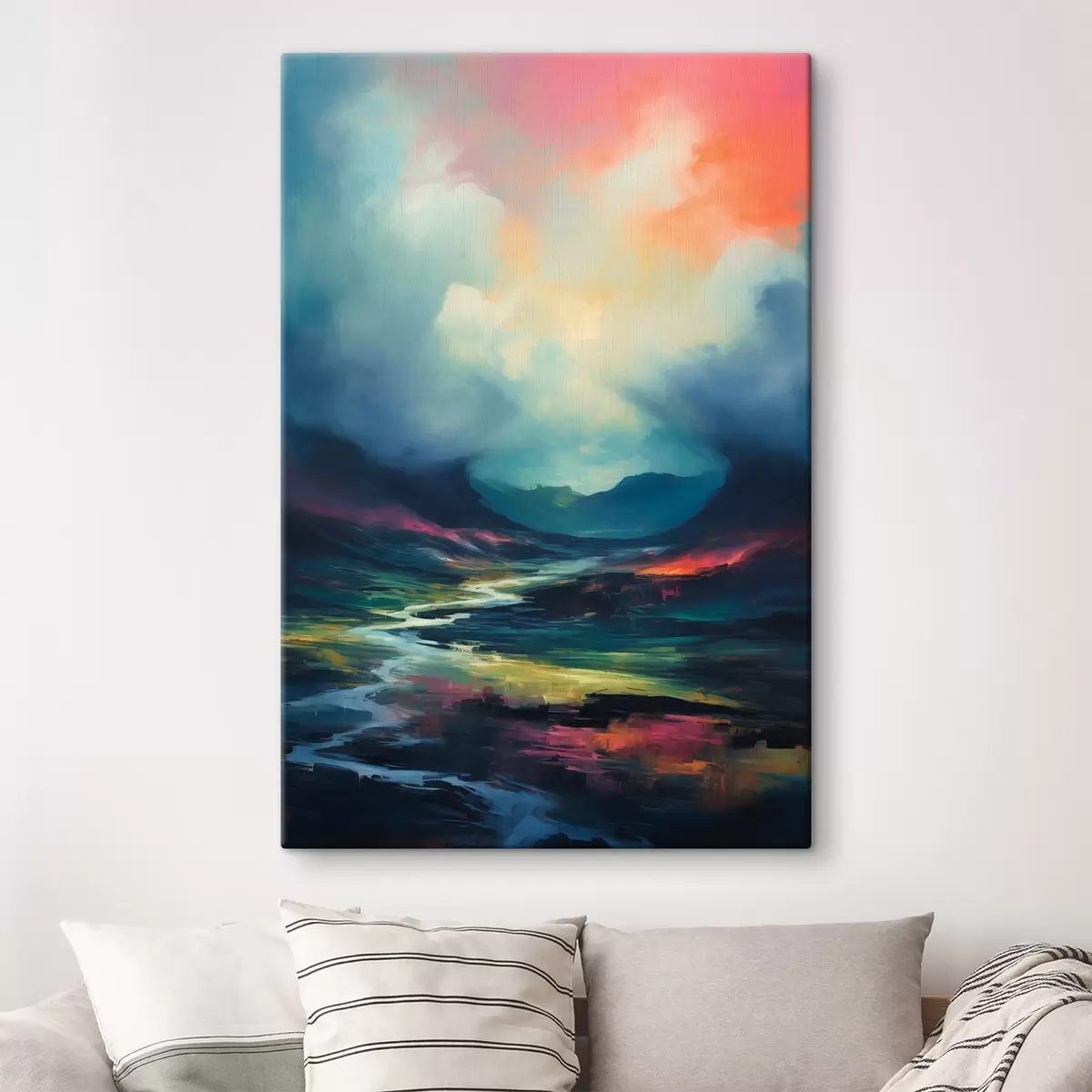 Gemälde Abstrakte Landschaft mit einem Fluss und Bergen Art. s45627