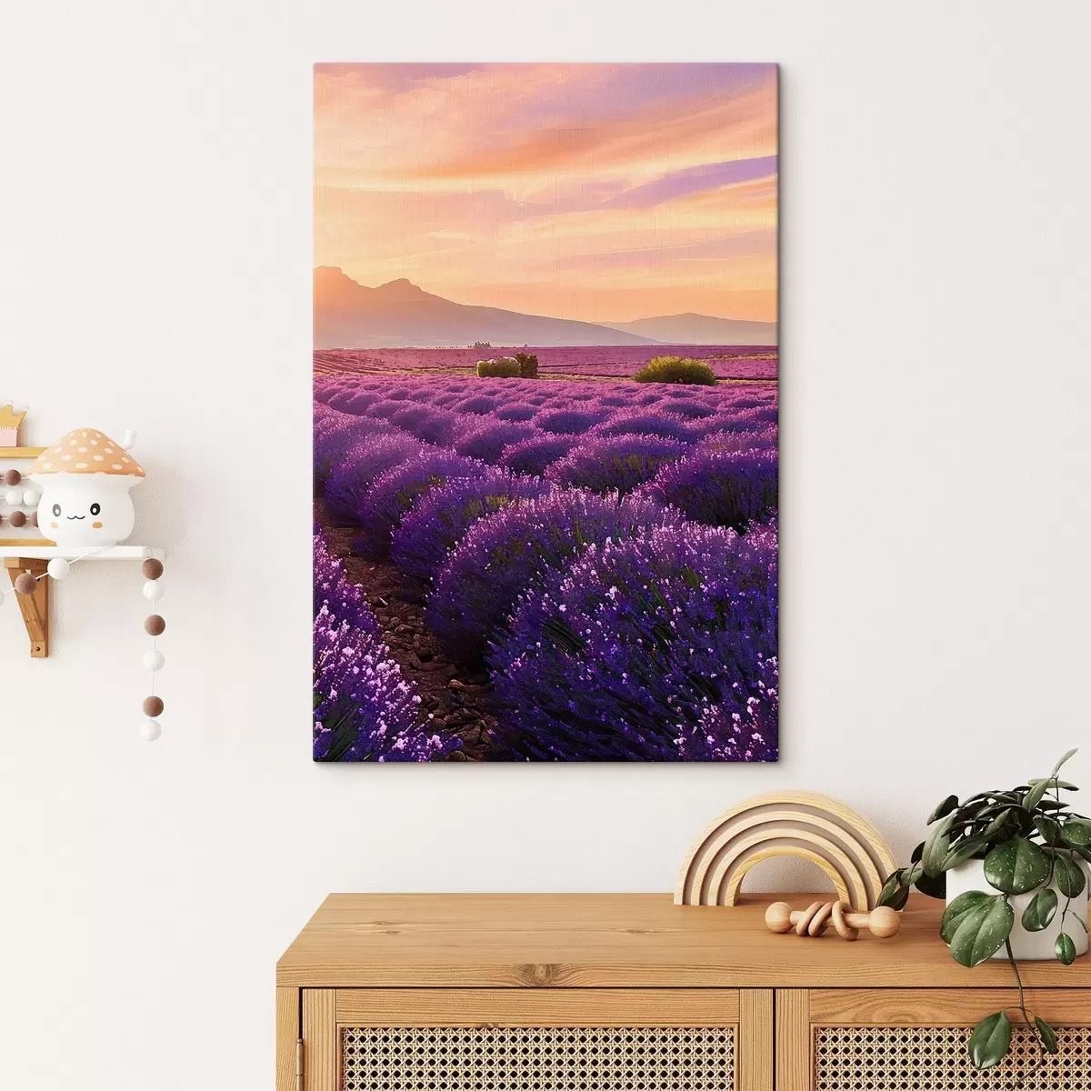 Gemälde Lavendel vor dem Hintergrund eines Sonnenuntergangs in den Bergen Art. s45664
