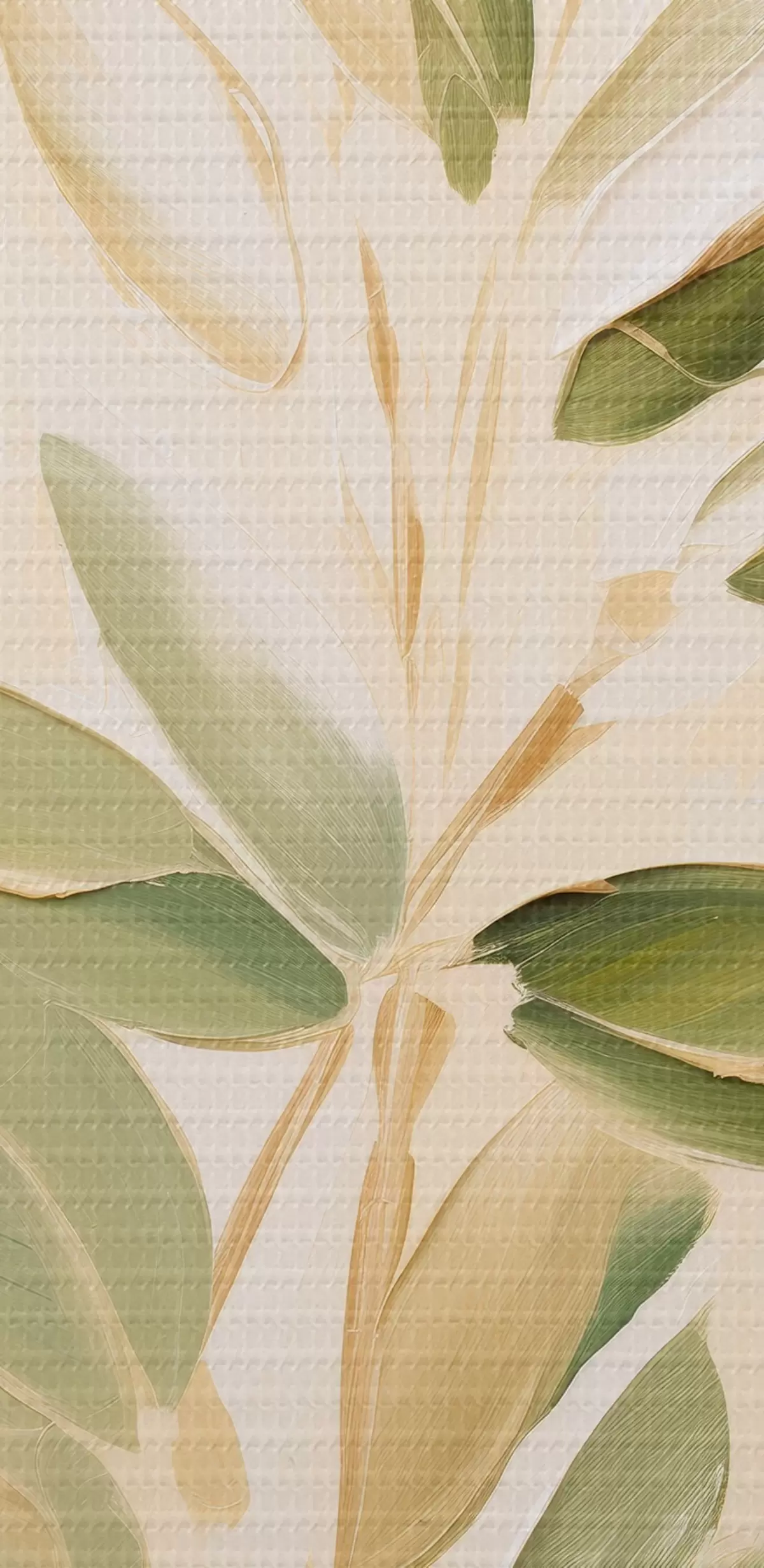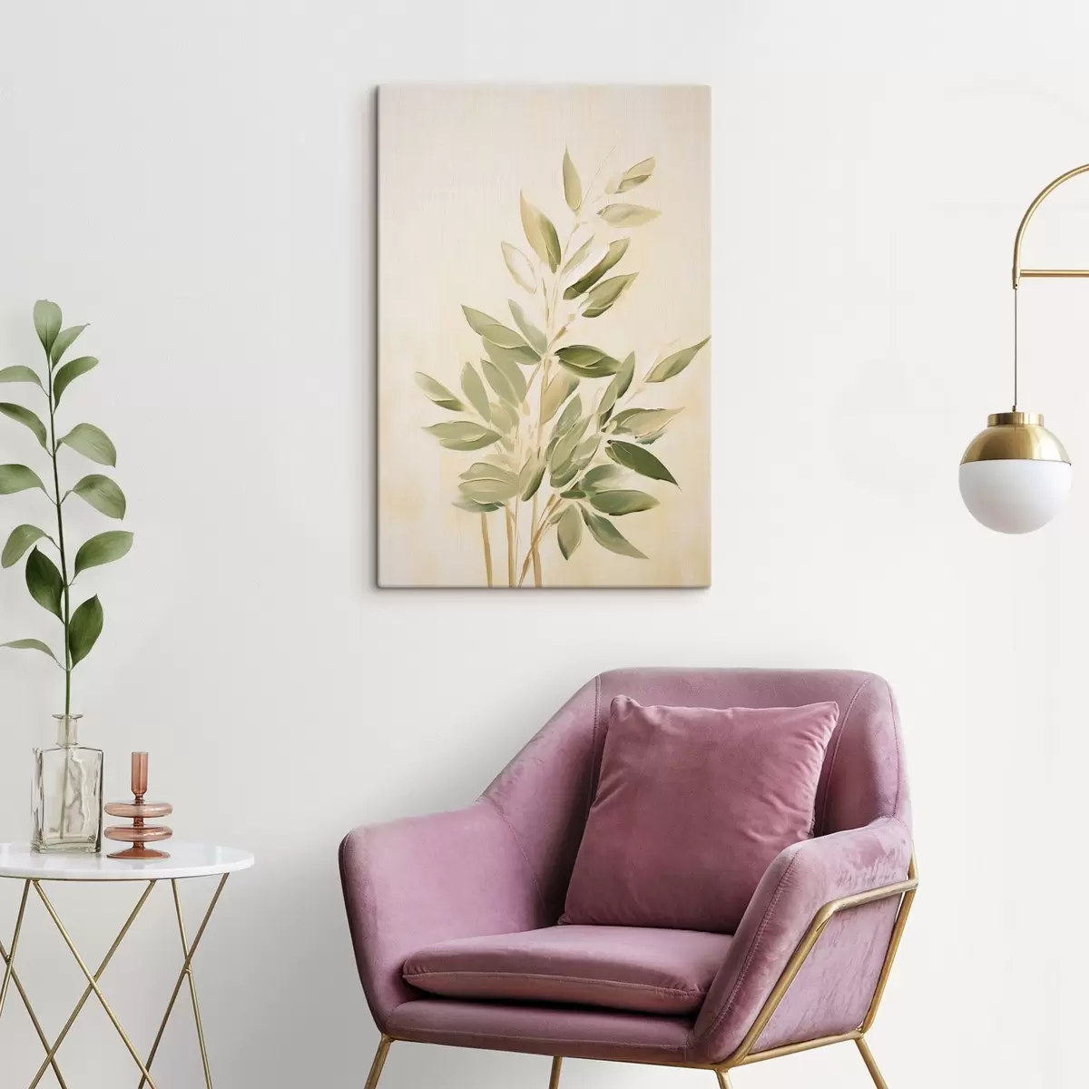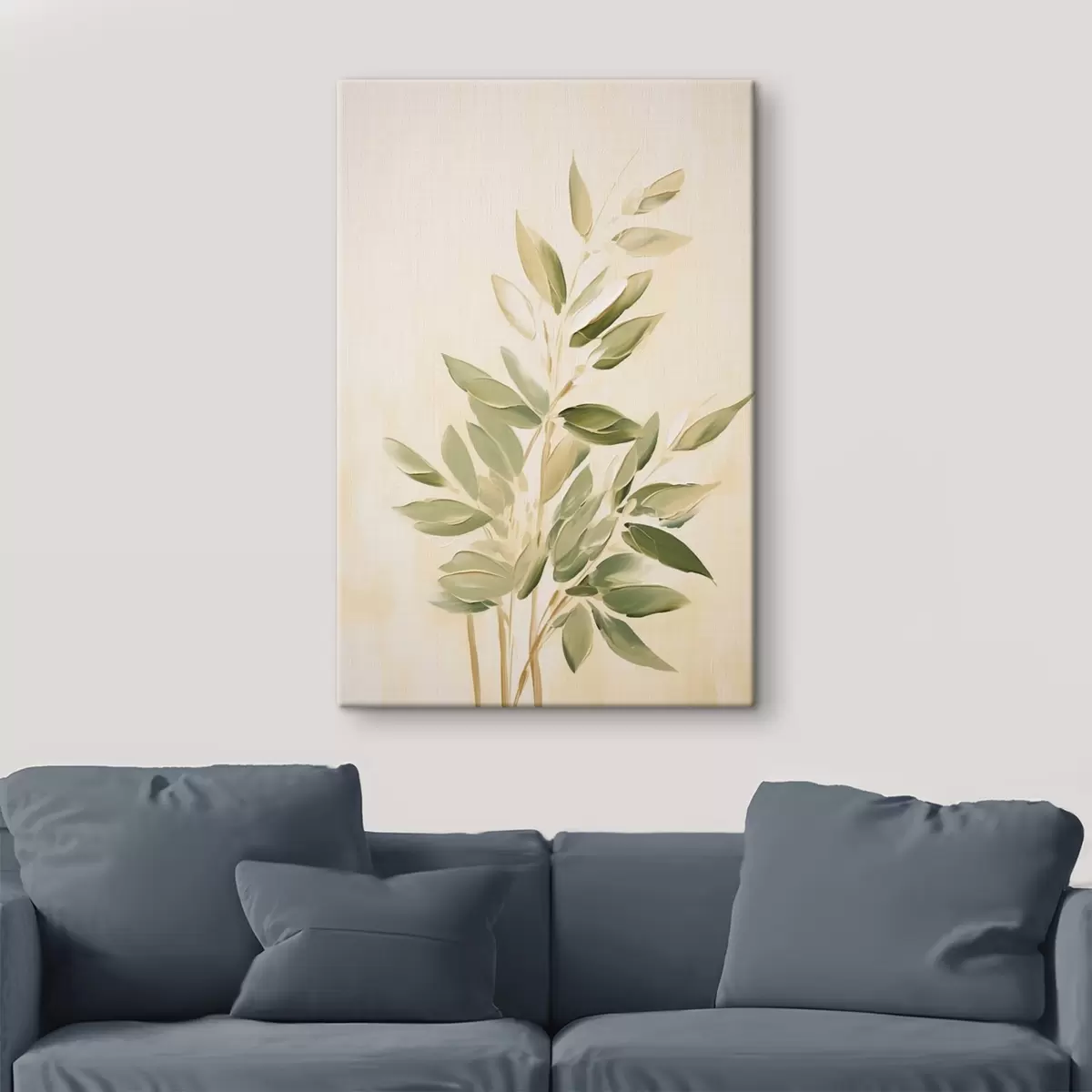 Gemälde Zweig mit grünen Blättern auf einem hellbeigen Hintergrund Art. s45689