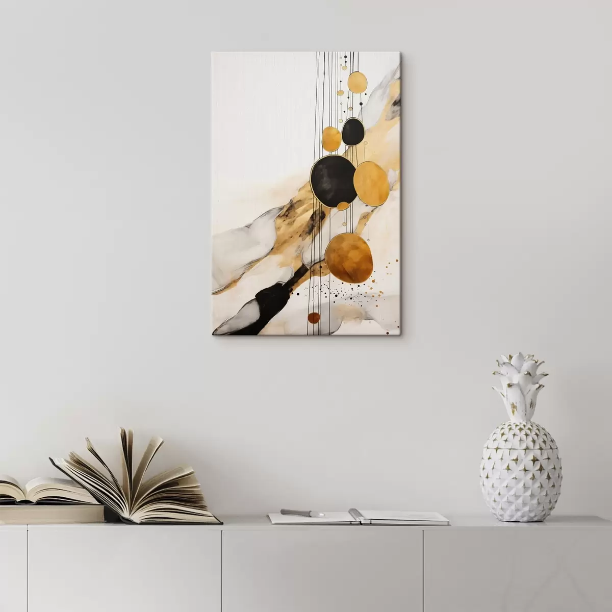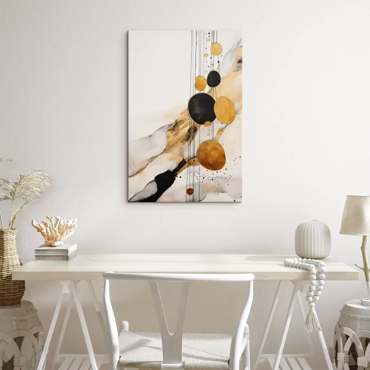Gemälde Abstrakte orange und schwarze Kreise auf einem hellen Hintergrund Art. s45693